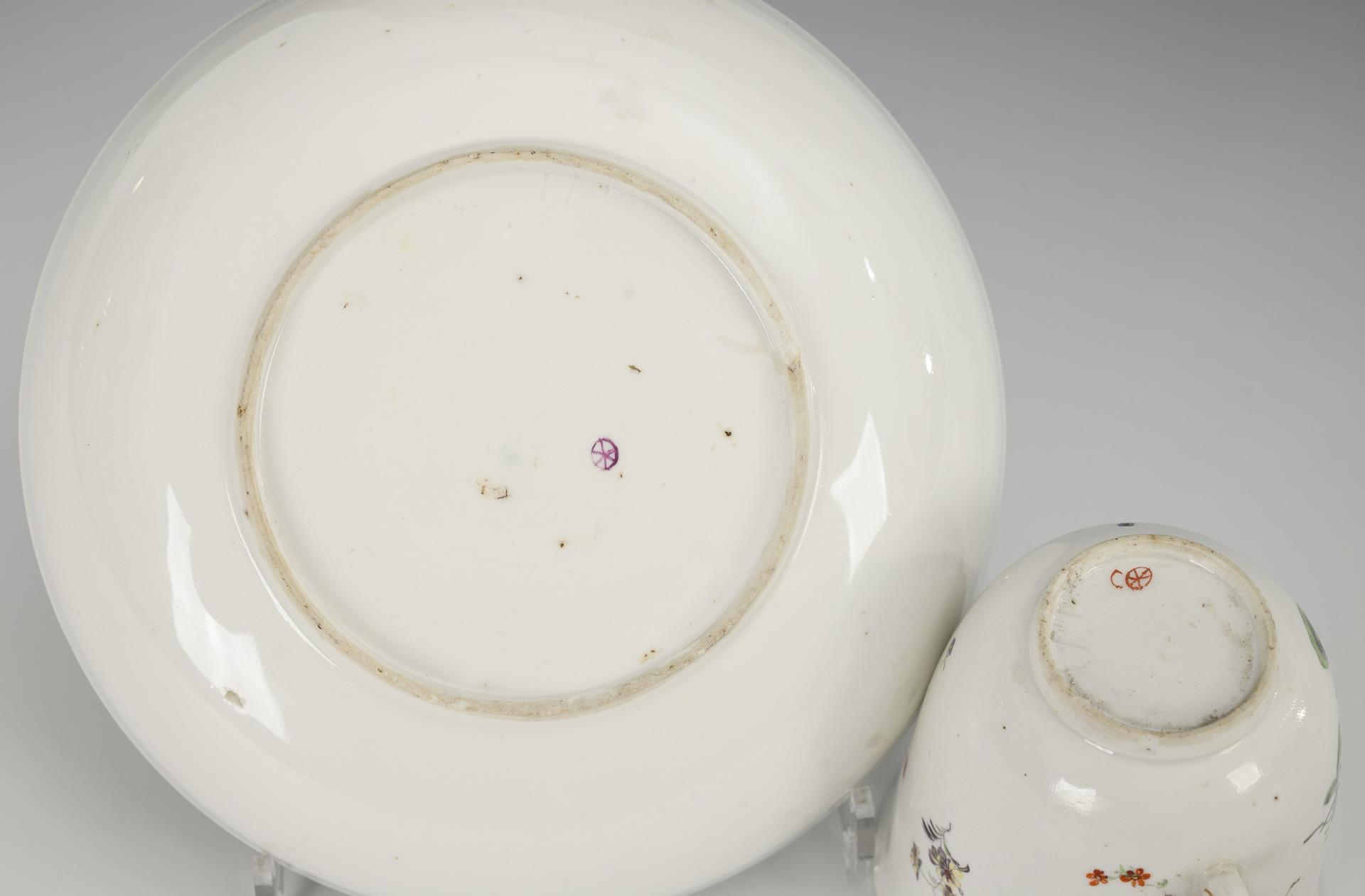 Polychrome painted, decorated in gold. Cup (h 7 cm), original saucer (Ø 13.5 cm).