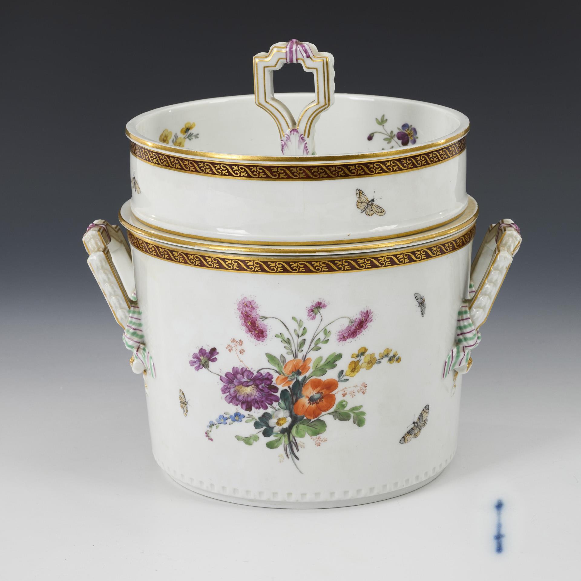 Ice vessel with flower and insect painting. KPM Berlin.