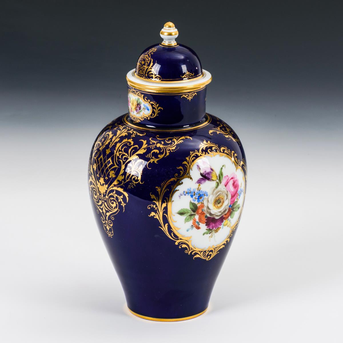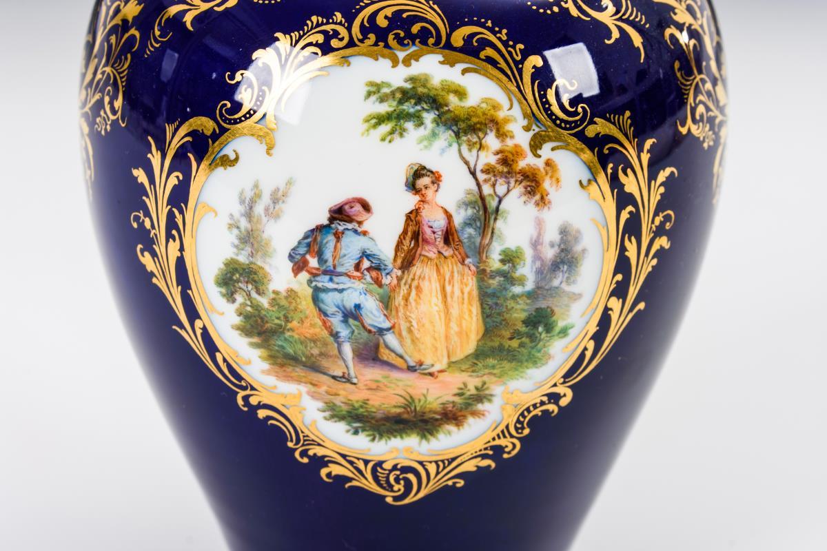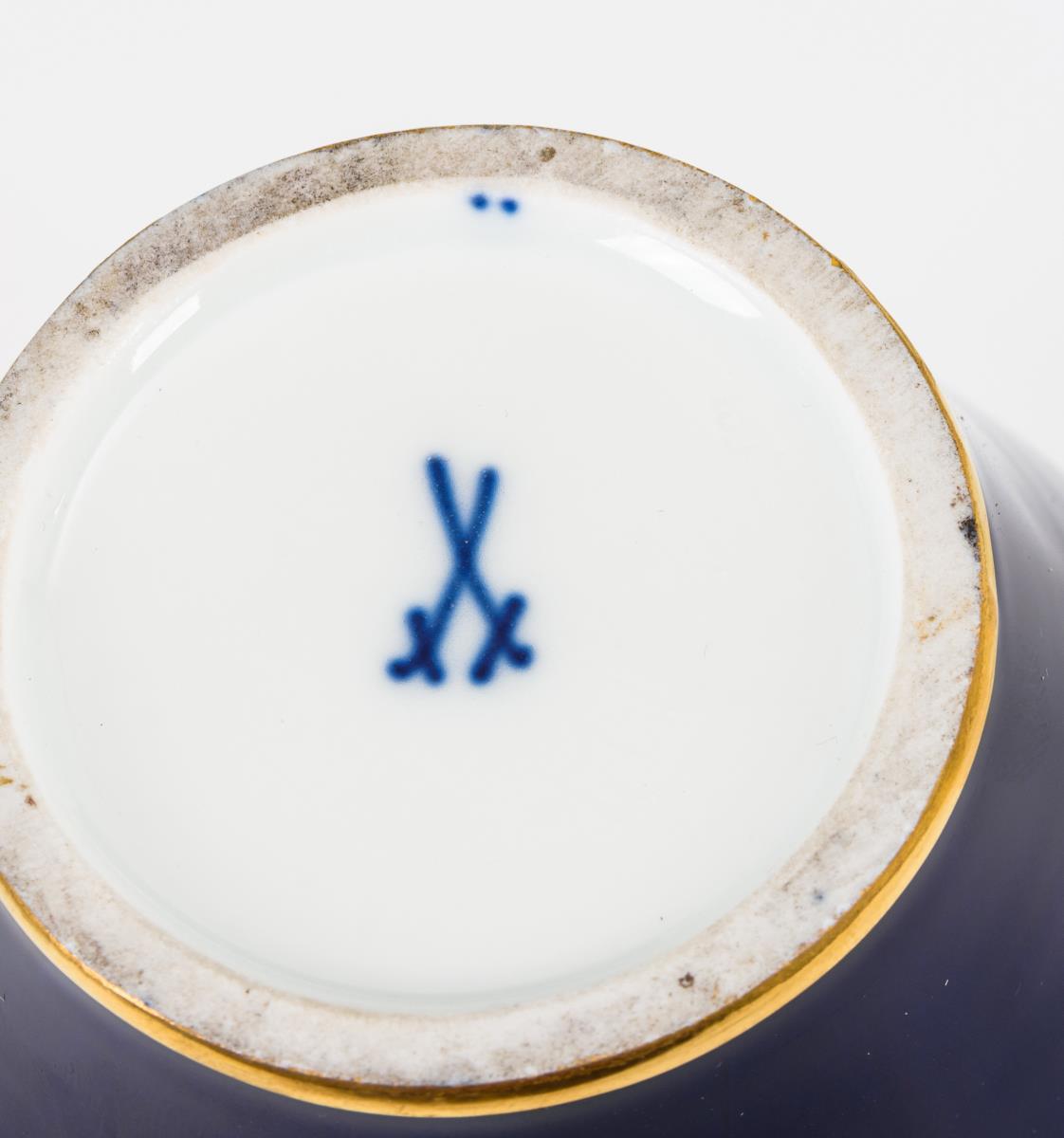 Kobaltblauer Fond, polychrome Malerei, Goldstaffage.