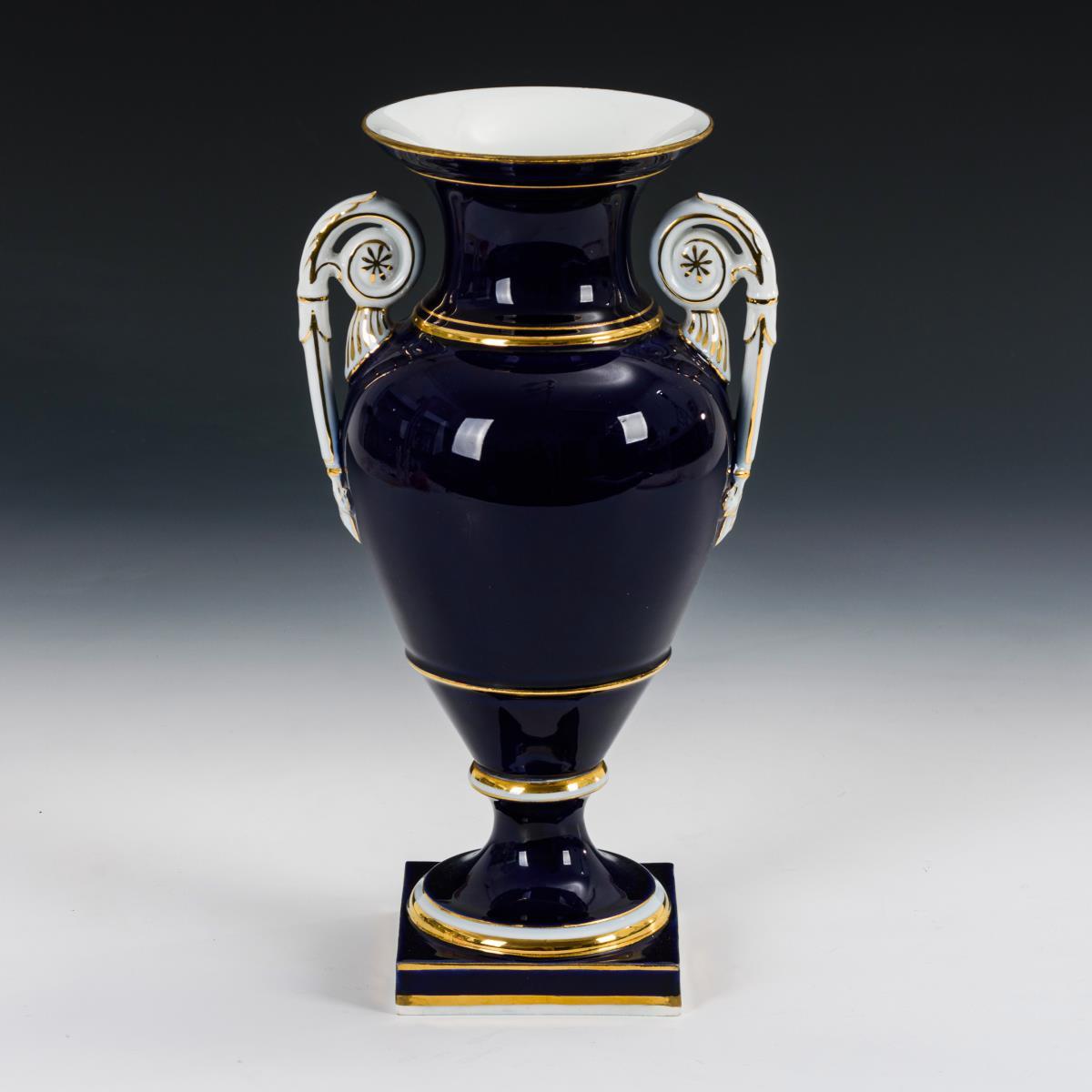 Kobaltblauer Fond, polychrome Blumenmalerei, Goldstaffage.