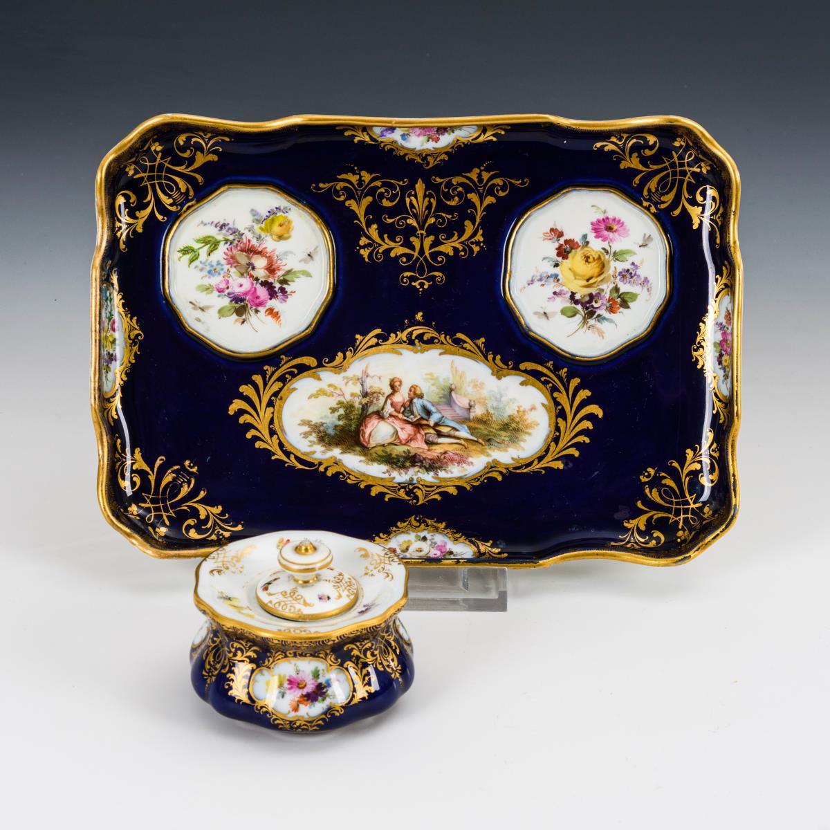Schreibzeug mit Kobaltfond.
