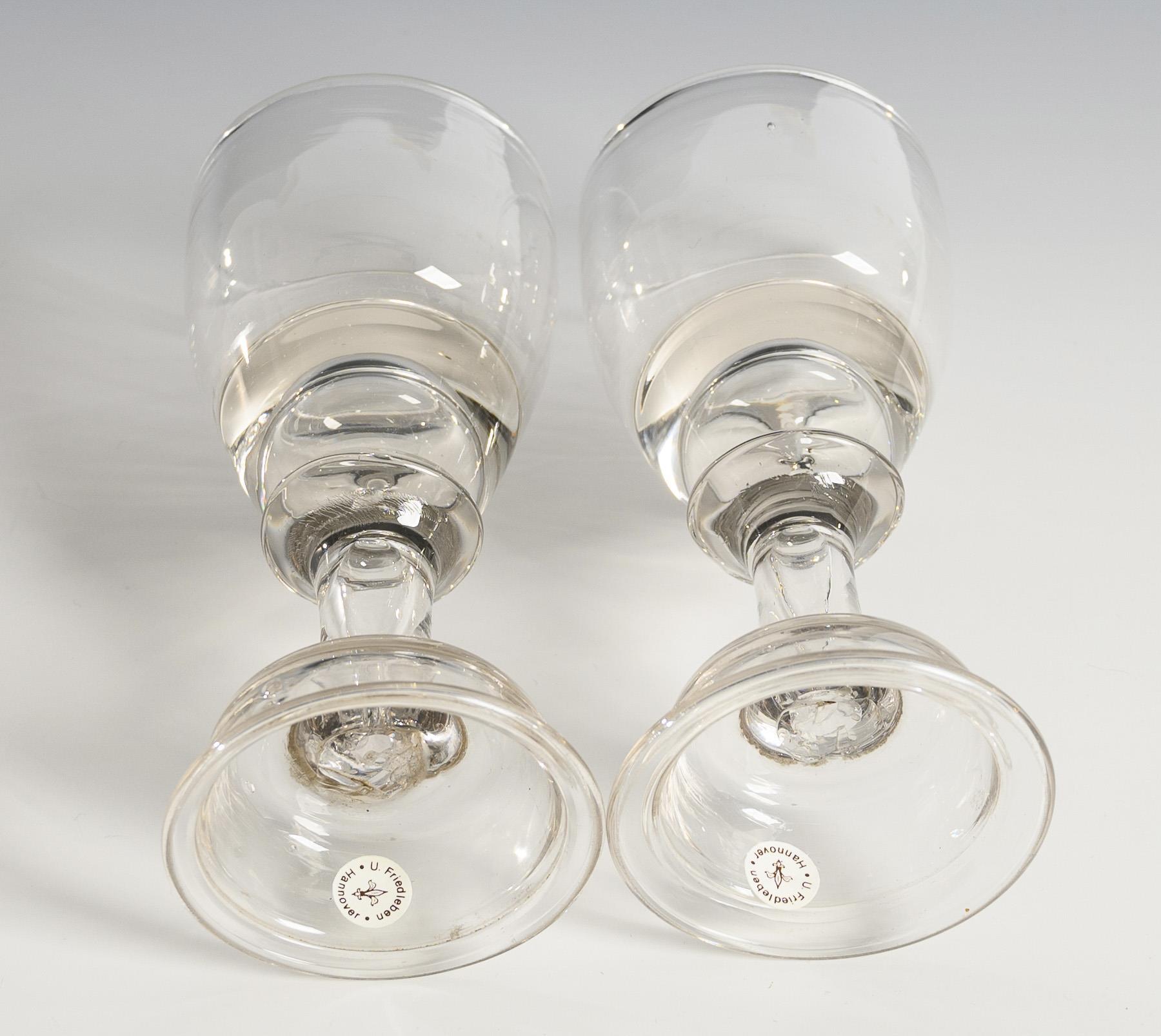 Bell-shaped cup with pierced air bubble in the massive cup base, shaft with pierced air bubble, hat foot with turned rim; pontil mark.