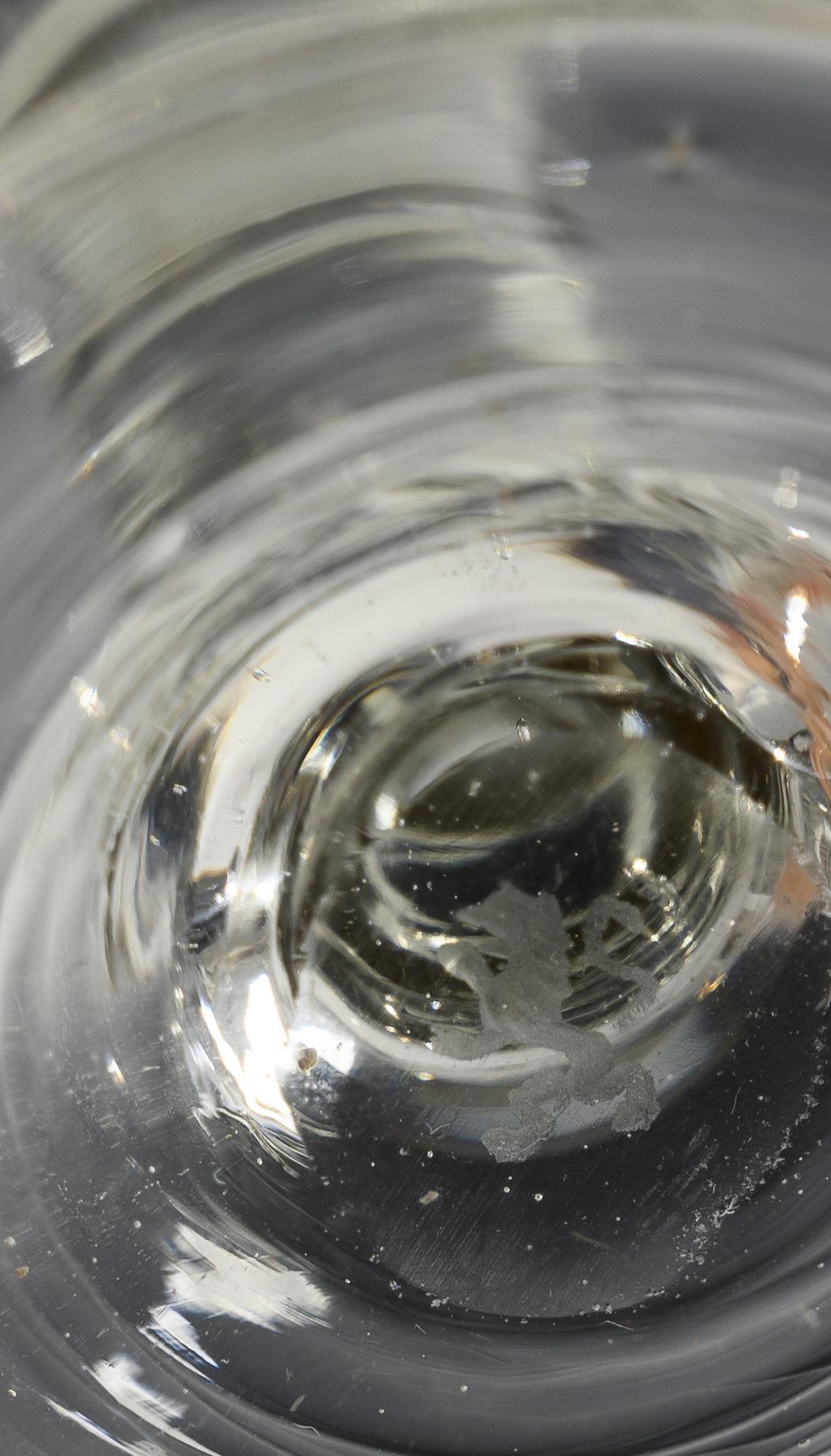 Conical dome merging into the solid shaft, 1x with pierced air bubble, round foot; cut out pontil mark with mark.