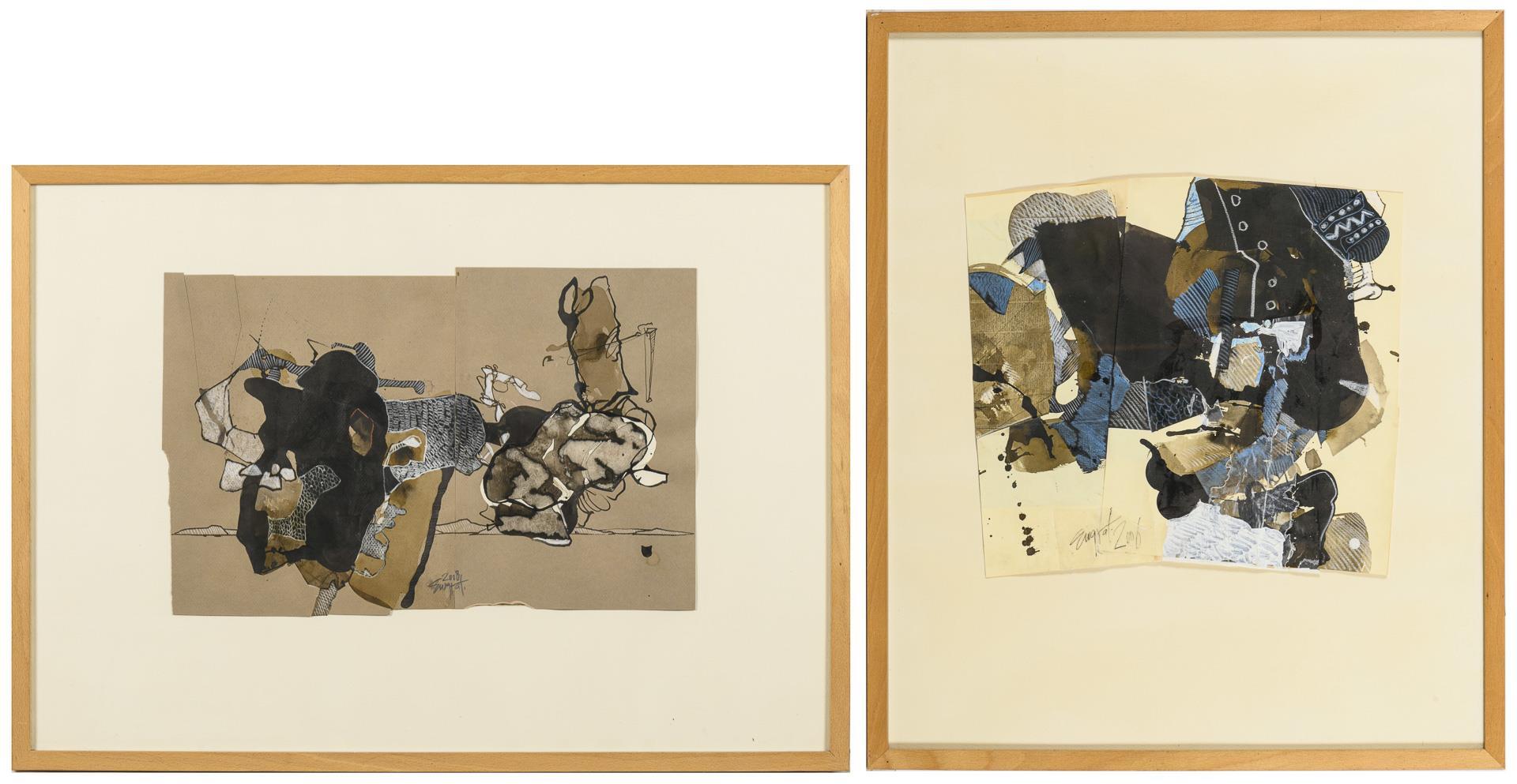 Each mixed media. Signed in the center and lower left. 2008 and 2006.