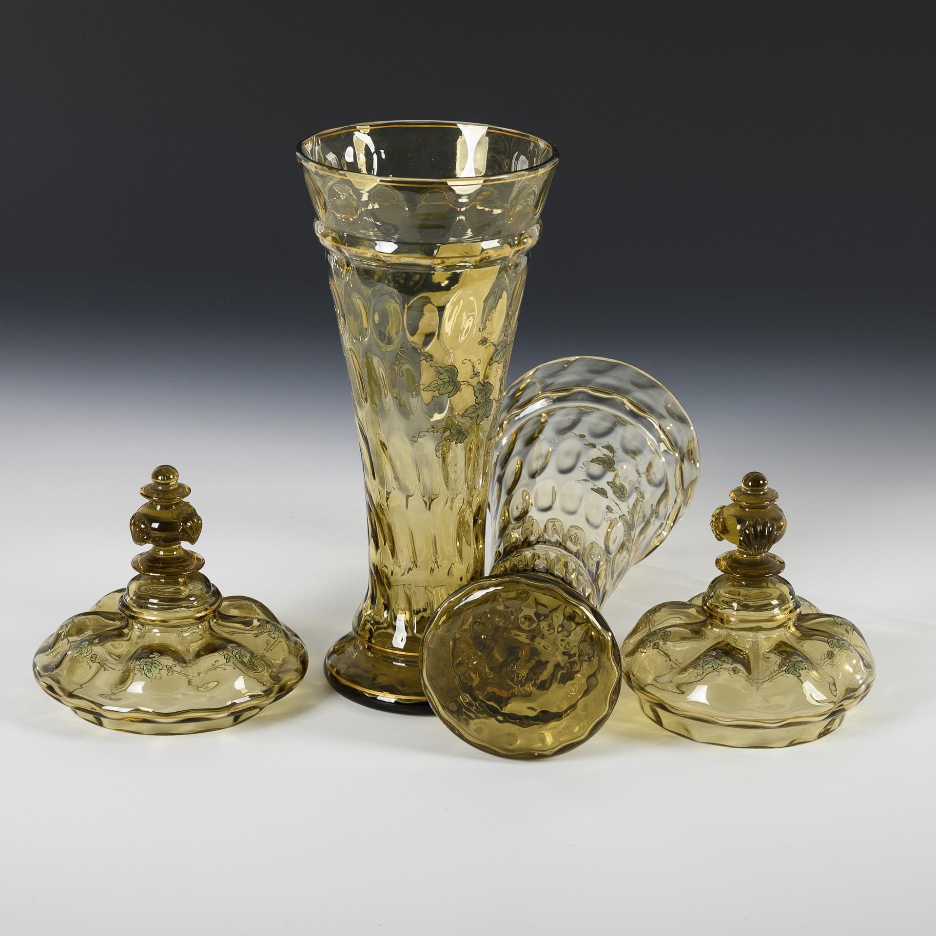 2 historicism lidded goblets with enamel painting. Fritz Heckert.
