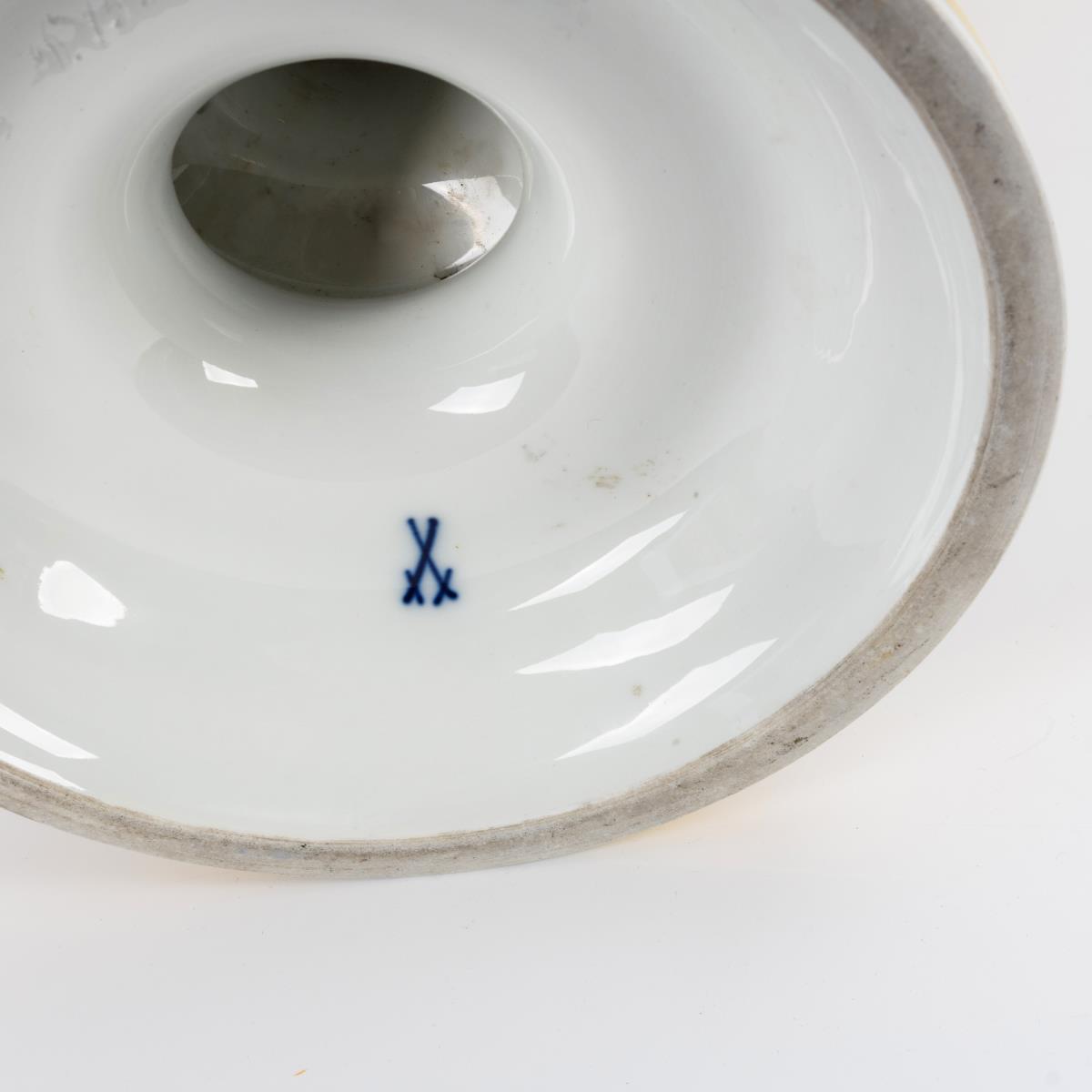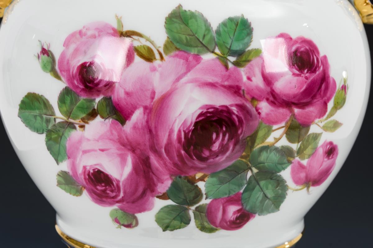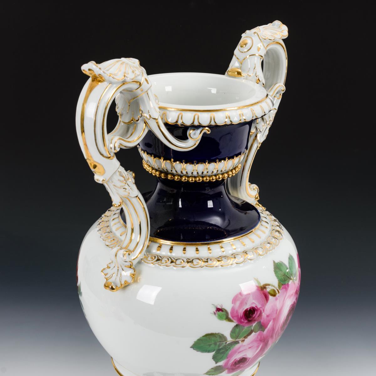 Kobaltblauer Teilfond, polychrome Blumenmalerei, Goldstaffage.