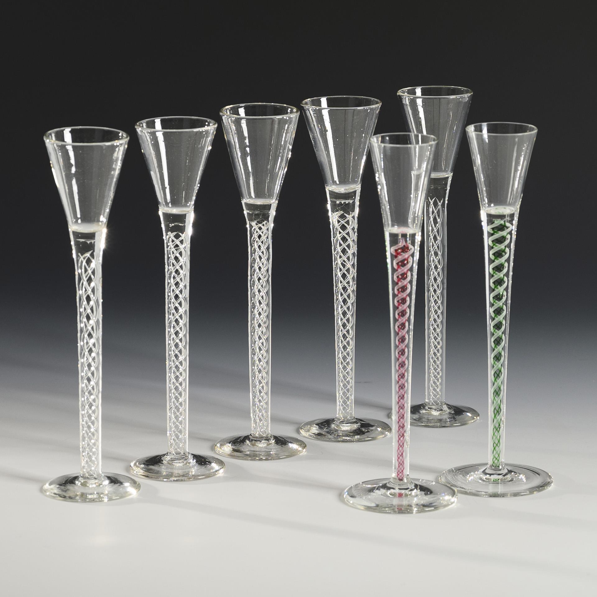 5+2 liqueur glasses with thread handles. Josephinenhütte.