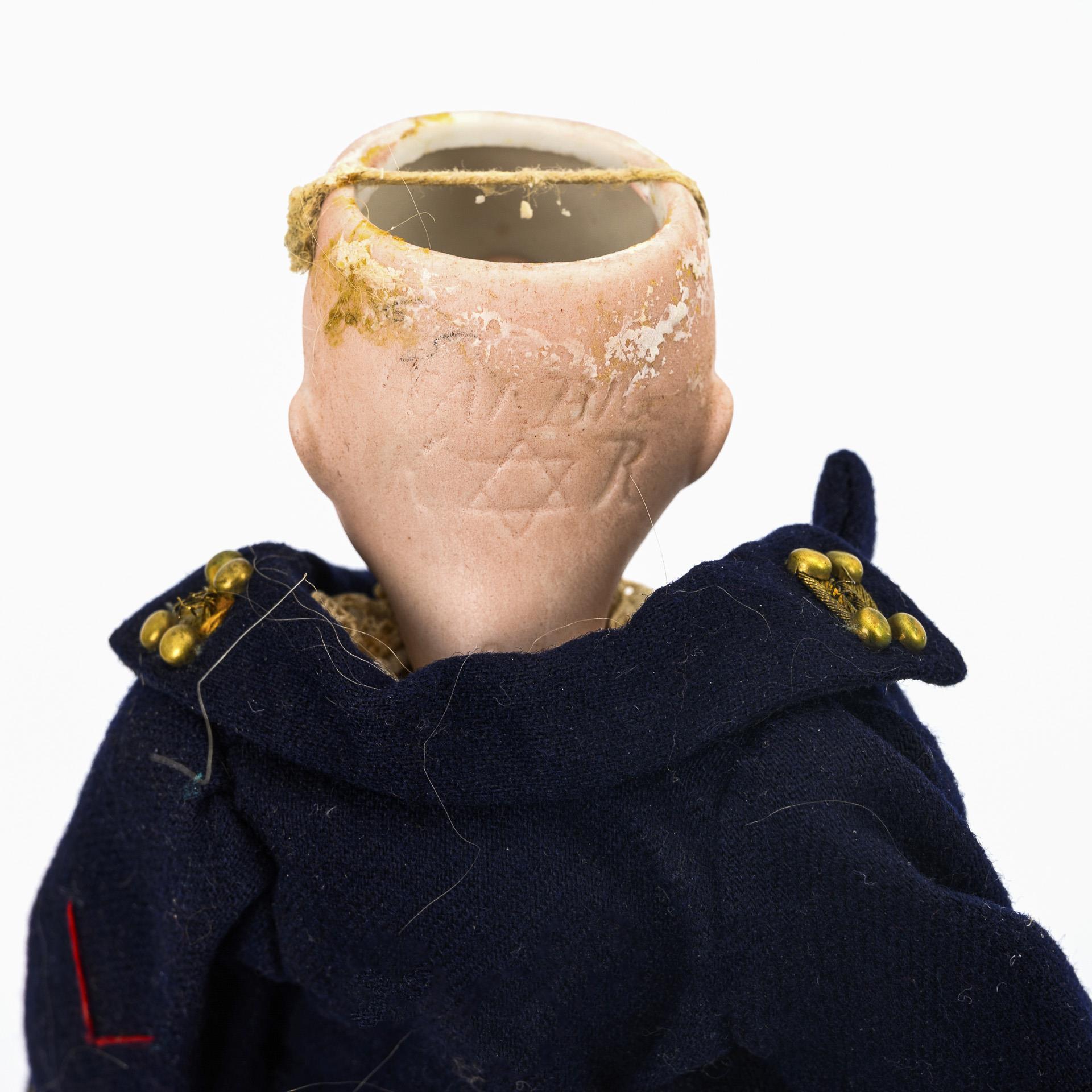 Small doll with old uniform coat. Kämmer & Reinhardt.