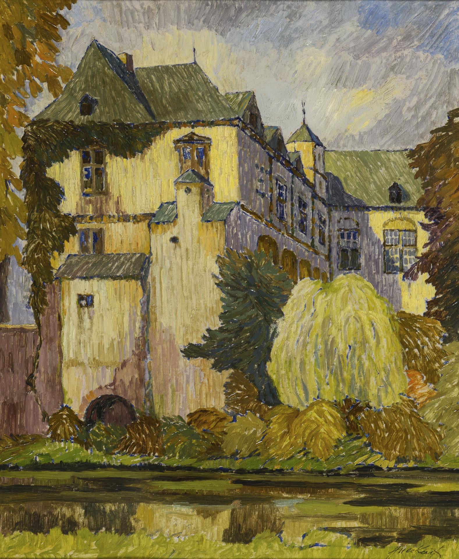 The large building in bright sunshine by a river | Addendum 10.2.2025: View of Rheydt Castle Mönchengladbach.