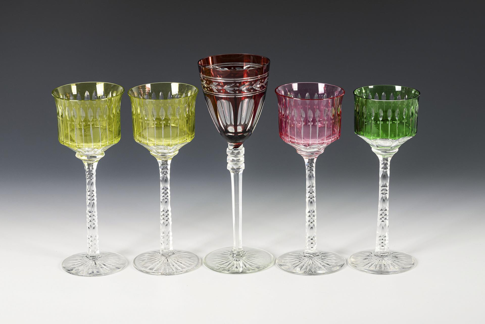 1+4 overlay goblet glasses.