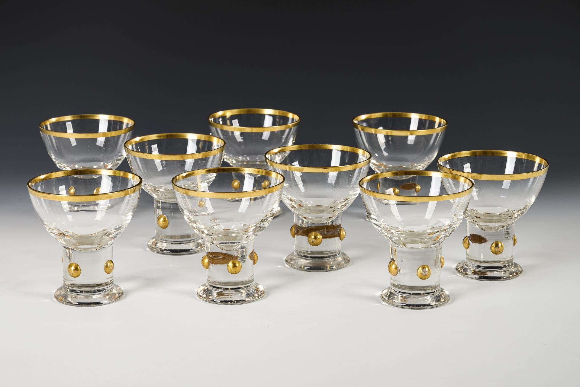 Clear glass, gold decoration. H 10.5 cm. 2850 g.