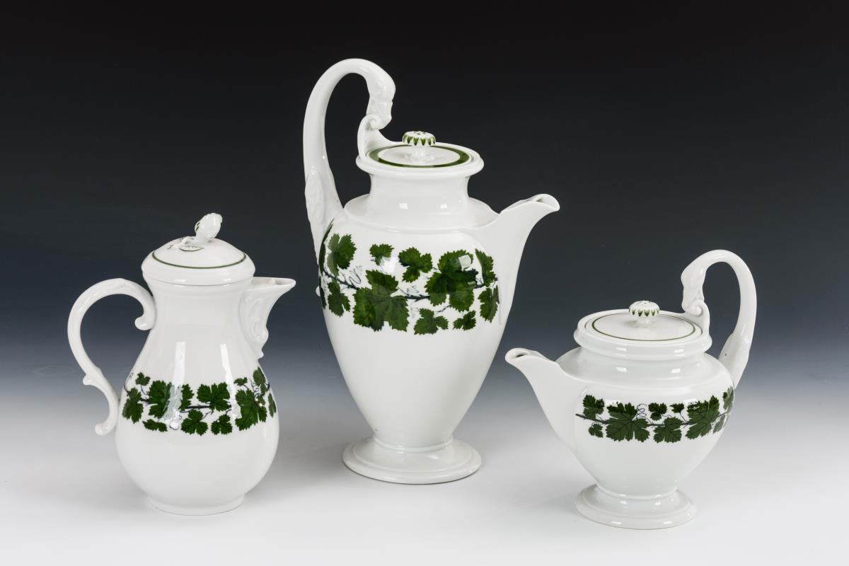 3 Kannen mit Weinlaubdekor.