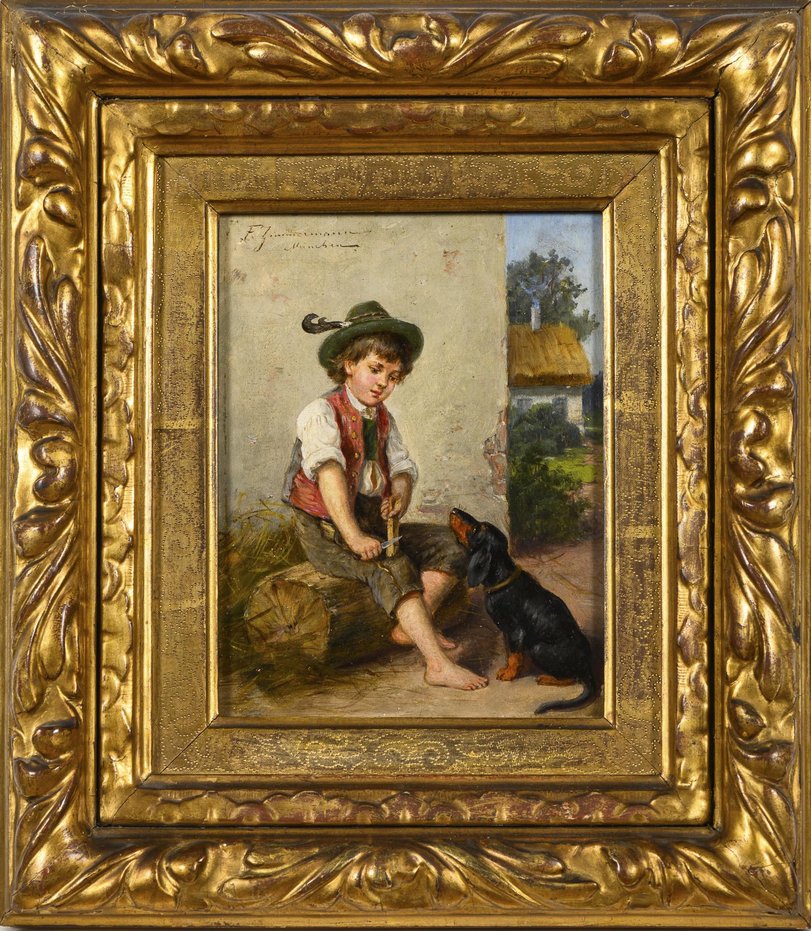 Carving boy with dachshund