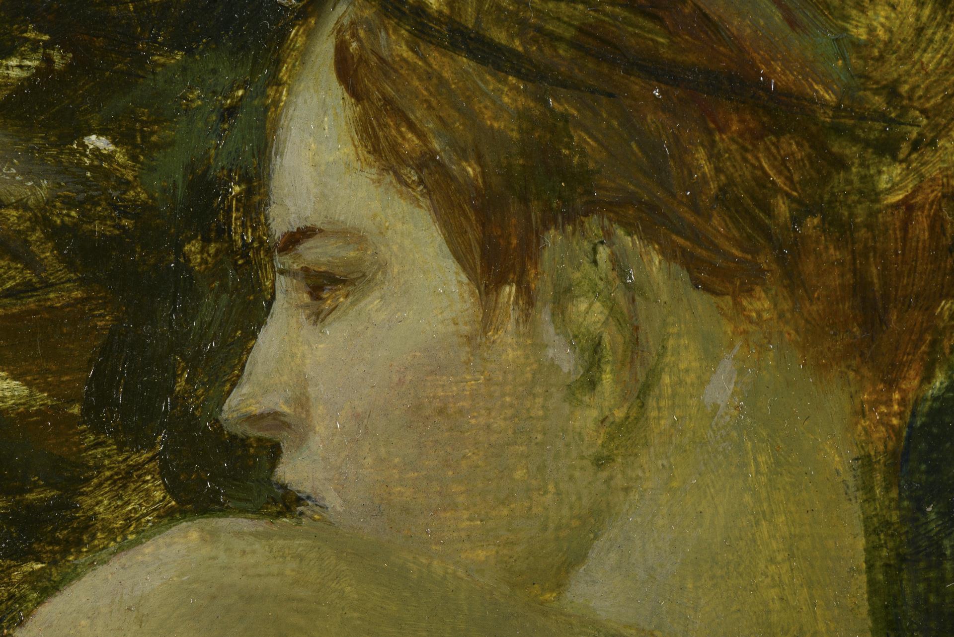 Oil/canvas. Signed in Cyrillic lower left, indistinct Cyrillic lettering on verso. (19)92.