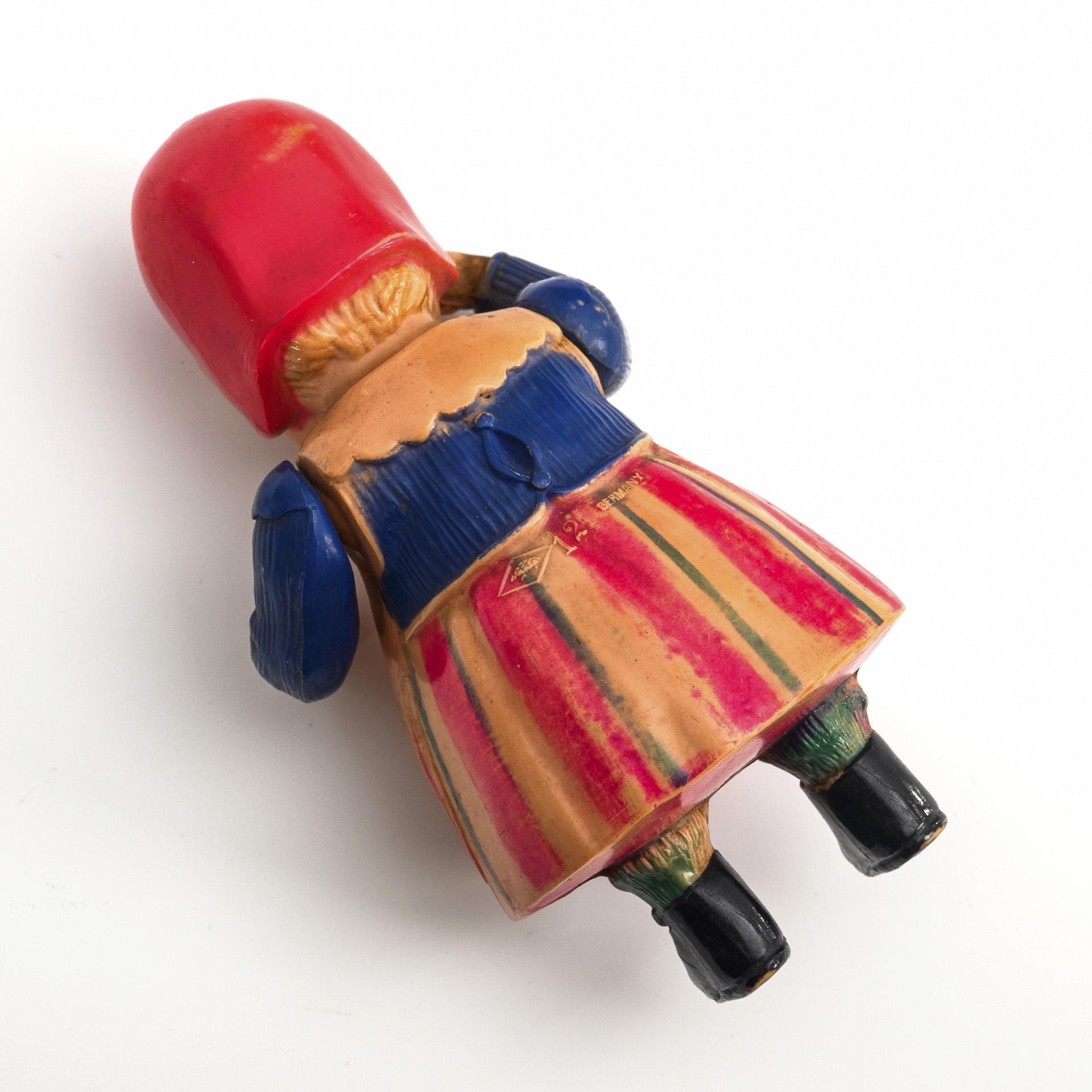 Rare celluloid figure of a redhead. Shield crown.