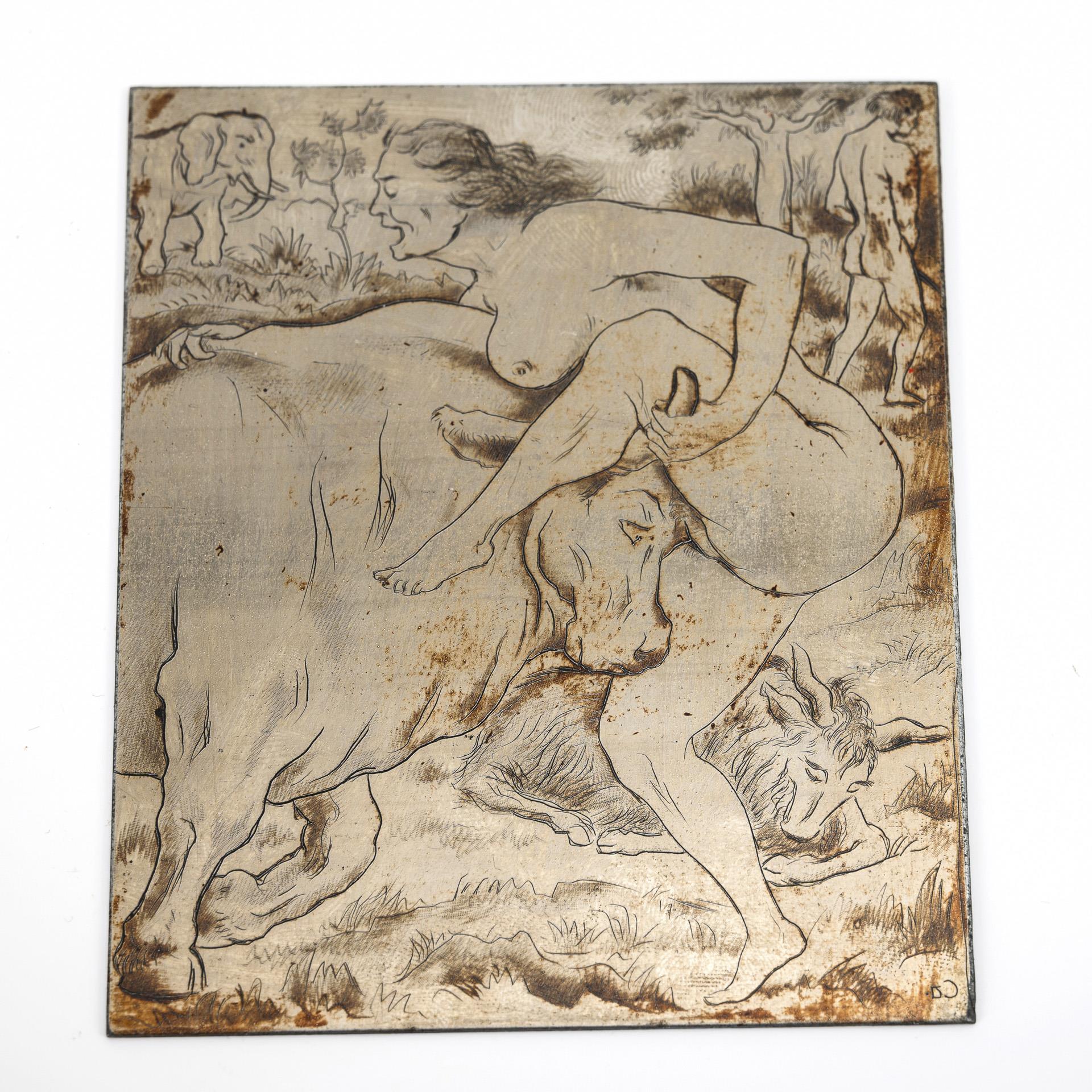 Erotic depictions, see catalog no. 3001. Parts with small lesions.