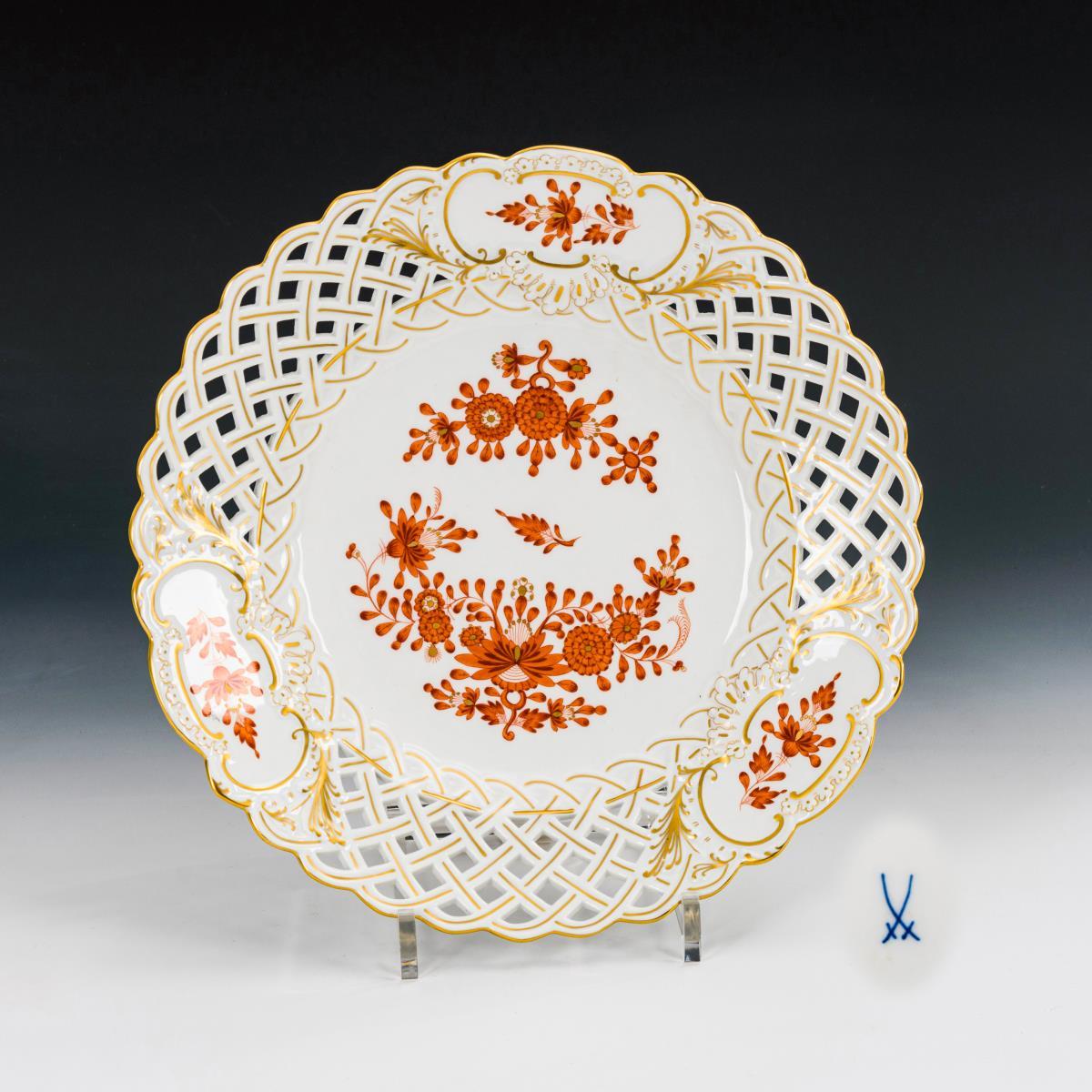 Korallenrote, indianische Blumenmalerei, Goldstaffage.