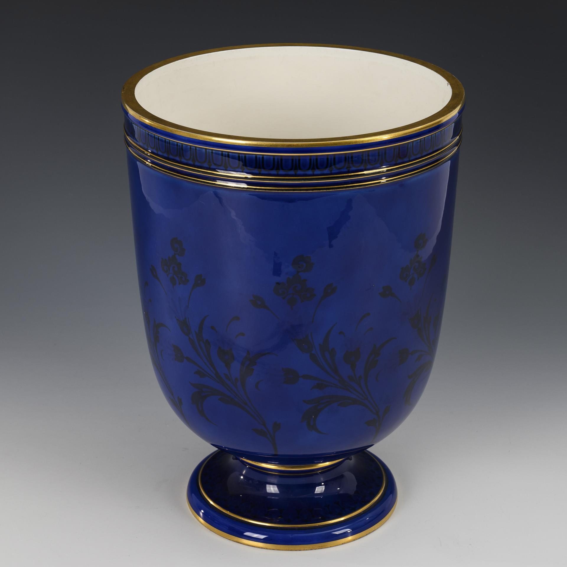 Cobalt blue ground, black flower painting, gold staffage. H 30.5 cm. 3.8 kg.