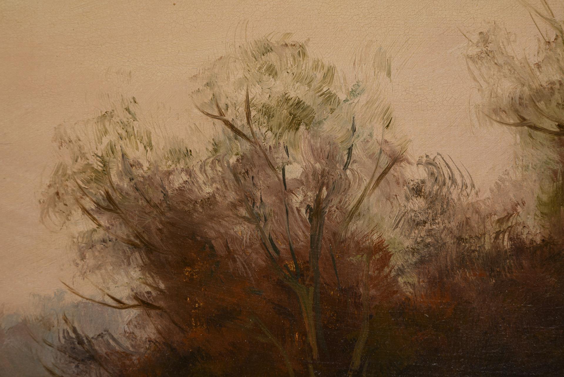 Oil/hard fiber. Indistinctly signed lower right. 1st half 20th century