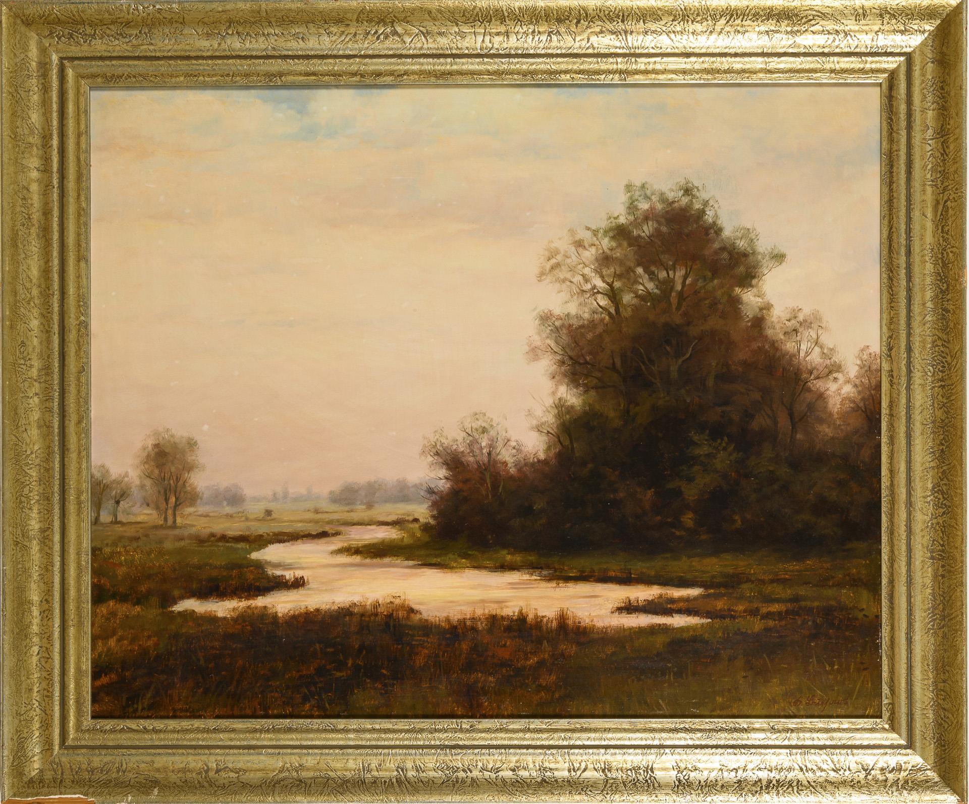 Distinctly signed: Evening river landscape