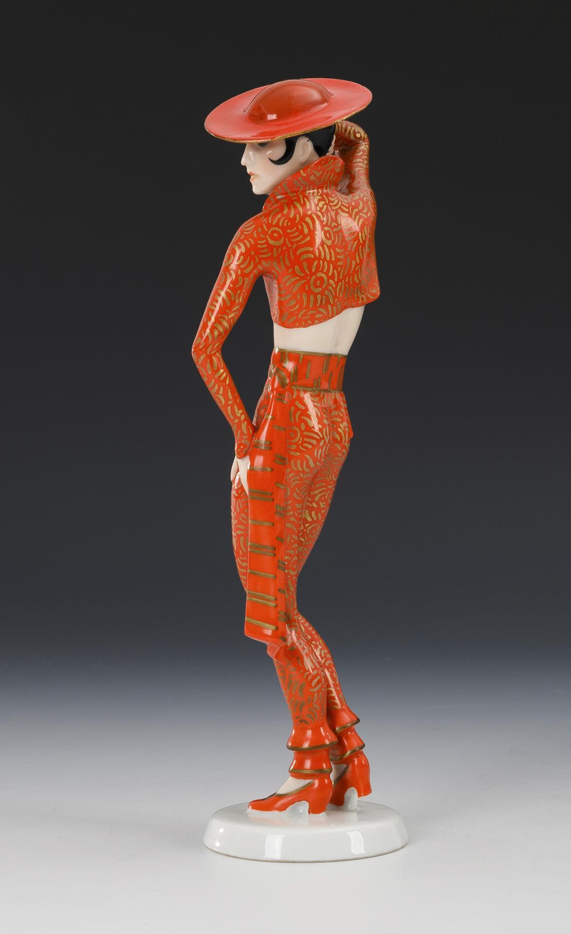 Art deco figure of an elegant dancer with bolero and hat. Hat restored.
