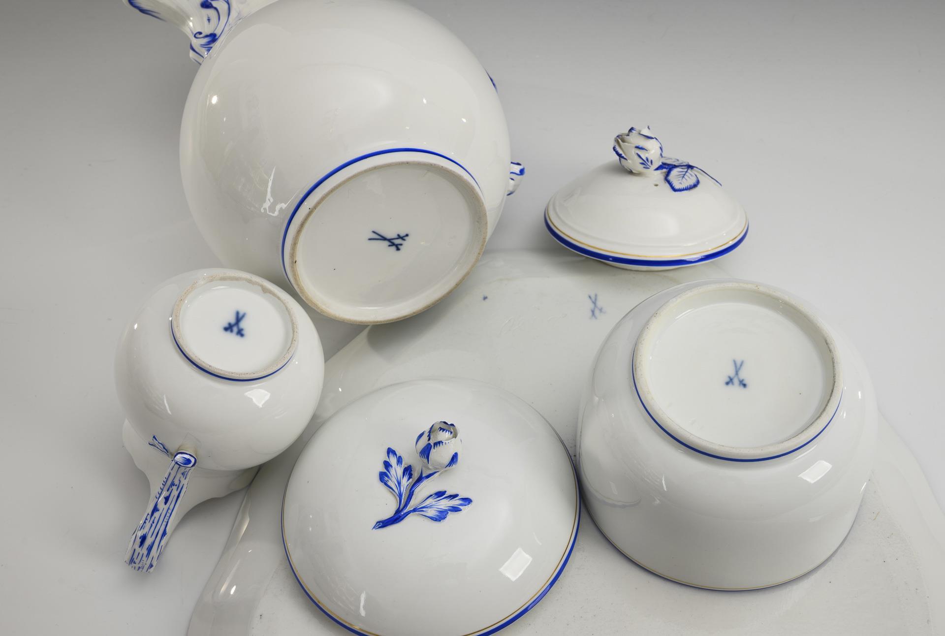 Core piece and tray with blue rim. Meissen.
