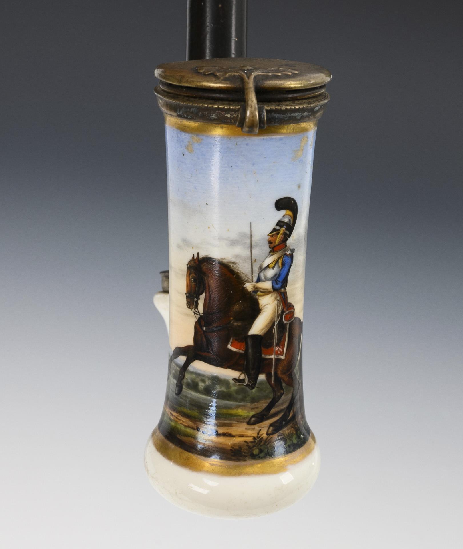 1x with the inscribed view of Munich, verso the dedication "Trau sein Schüchler 1839". / 1x with the depiction of a horseman in uniform. Both with metal-mounted hinged lid and wooden spar. Gold partly rubbed, partly scratched.