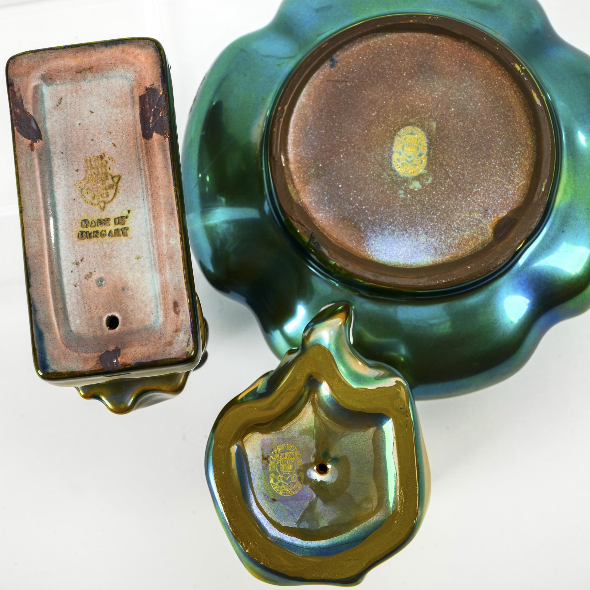 Four-pass vase and 2 children's figurines with lustre glaze. Zsolnay, Pecs.