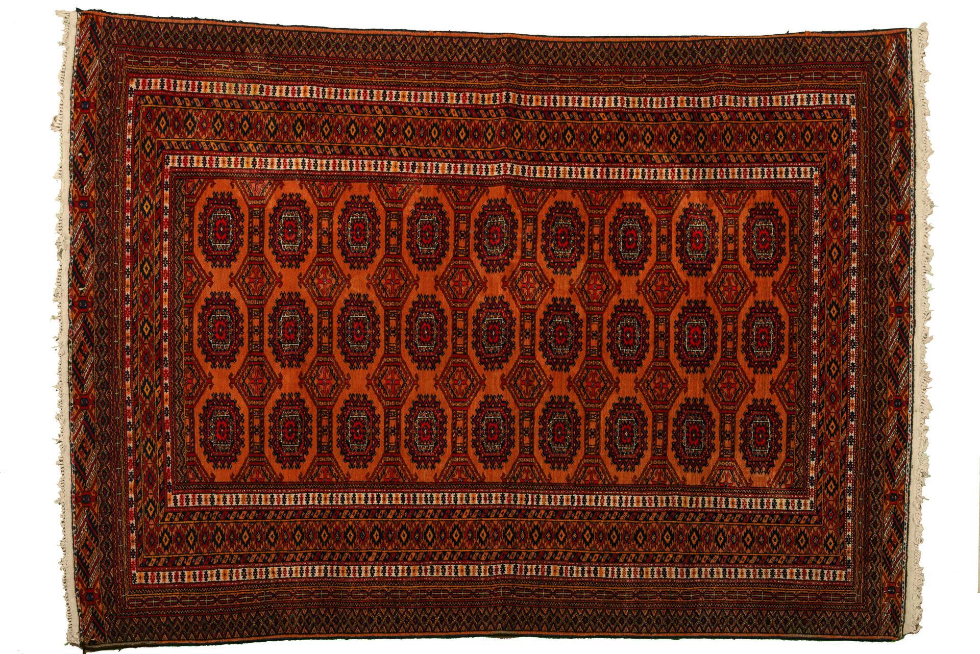 Artful carpet with Turkmen decoration.