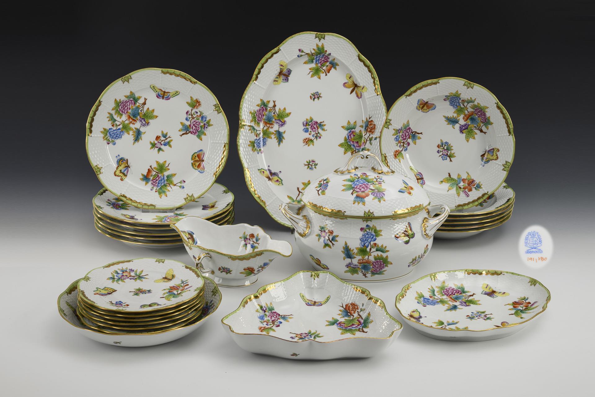 24 pieces. "Altozier" form. Tureen (H 22 cm), 6 dinner plates, 6 soup plates, 6 bread plates, 2 oval serving plates (L 36x27 and L 26x20 cm), 1 round and 1 triangular bowl (⌀ 24 cm each), 1 sauce boat.