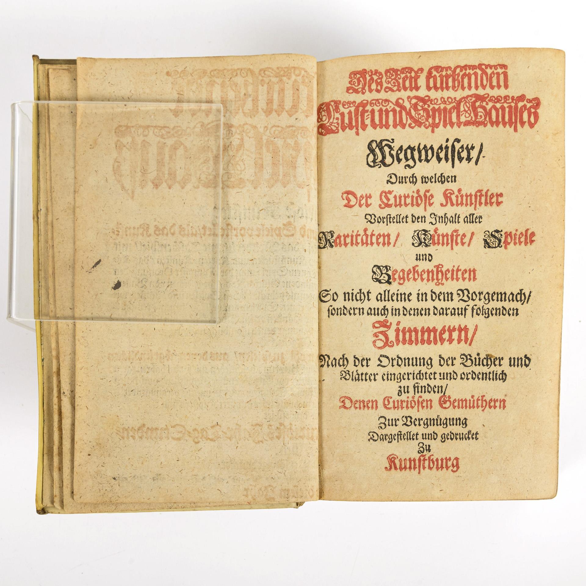 "In which the Curious Artist presents all kinds of rare arts and games in several rooms/ such as the artistic and meaningful King's Stone or Chess Game/ the world-famous Pocket Game/ with all kinds of natural seltzamen wunderbahrlichen Künstlichen Kunststücke und Karten-Künsten ... ".