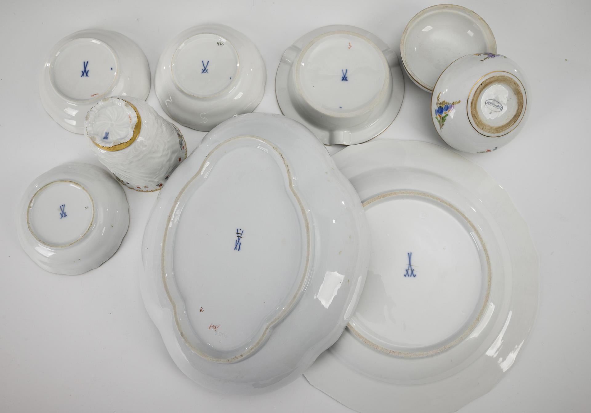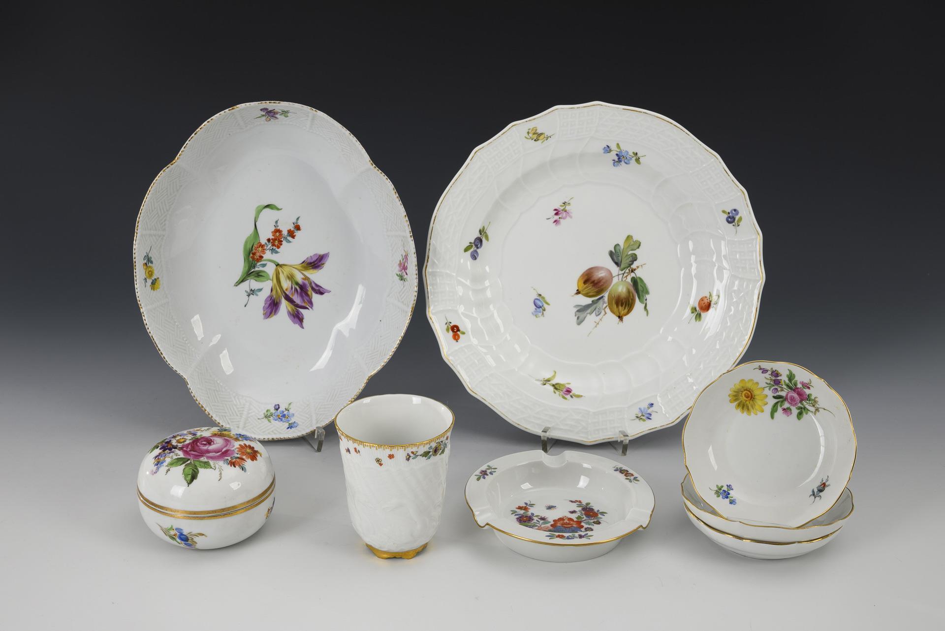 8 porcelains with flower painting. Meissen.