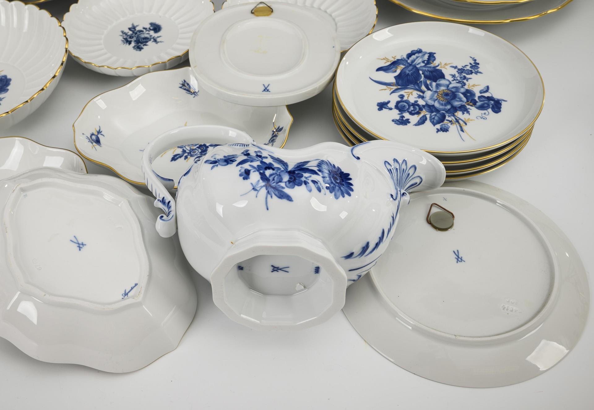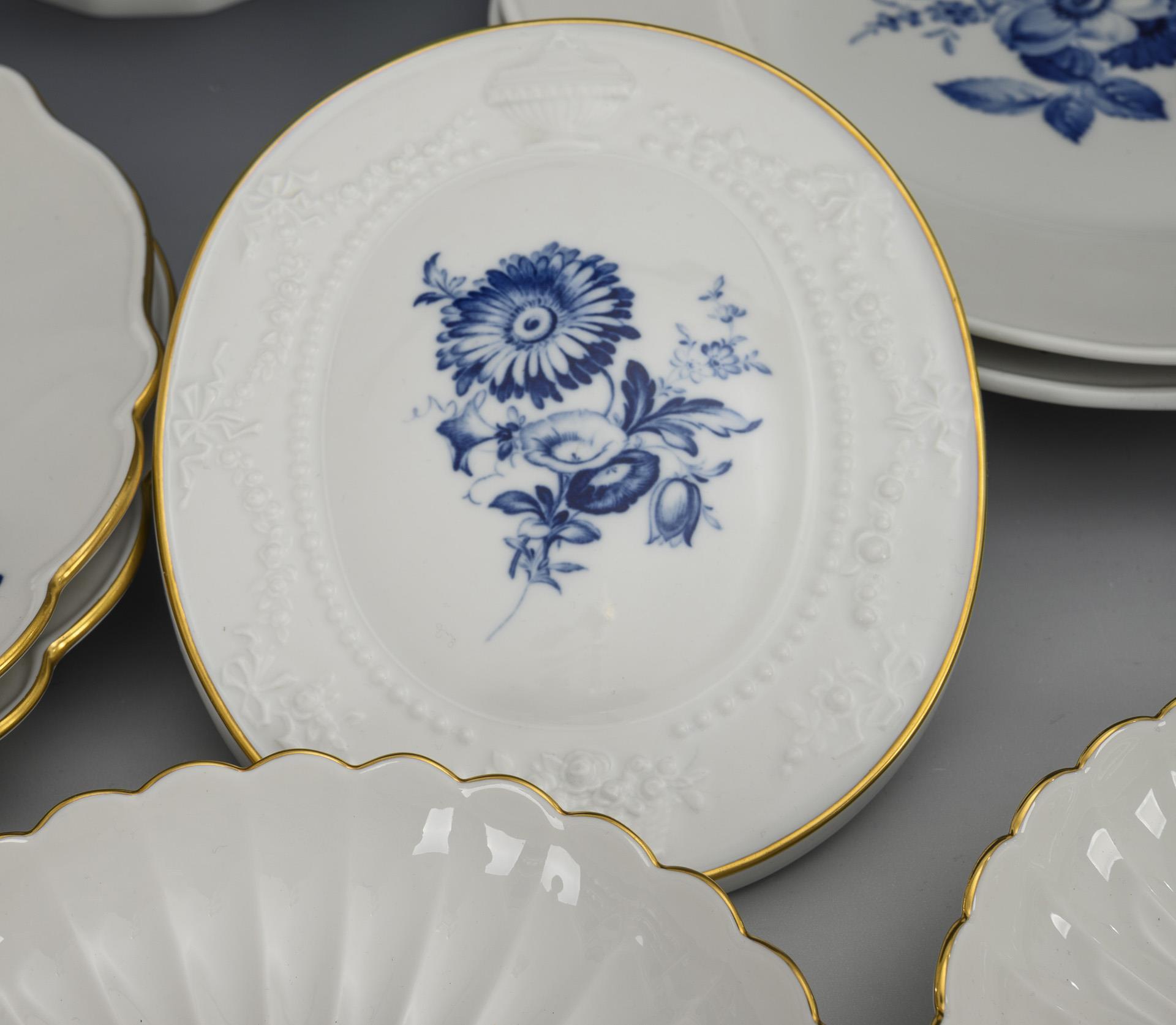 28 porcelains with blue decoration. Meissen.