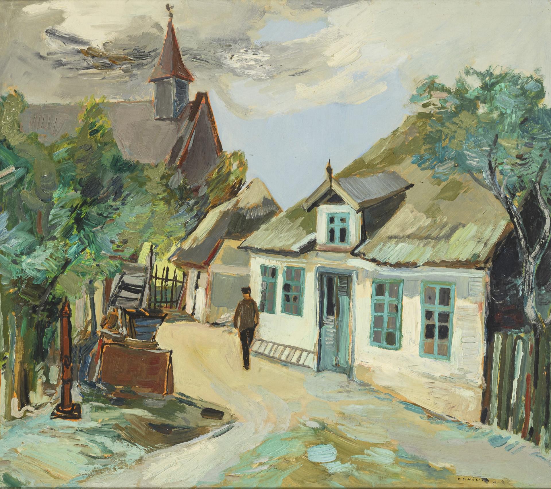 Oil/wood. Signed lower right, inscribed/titled verso. (19)53.