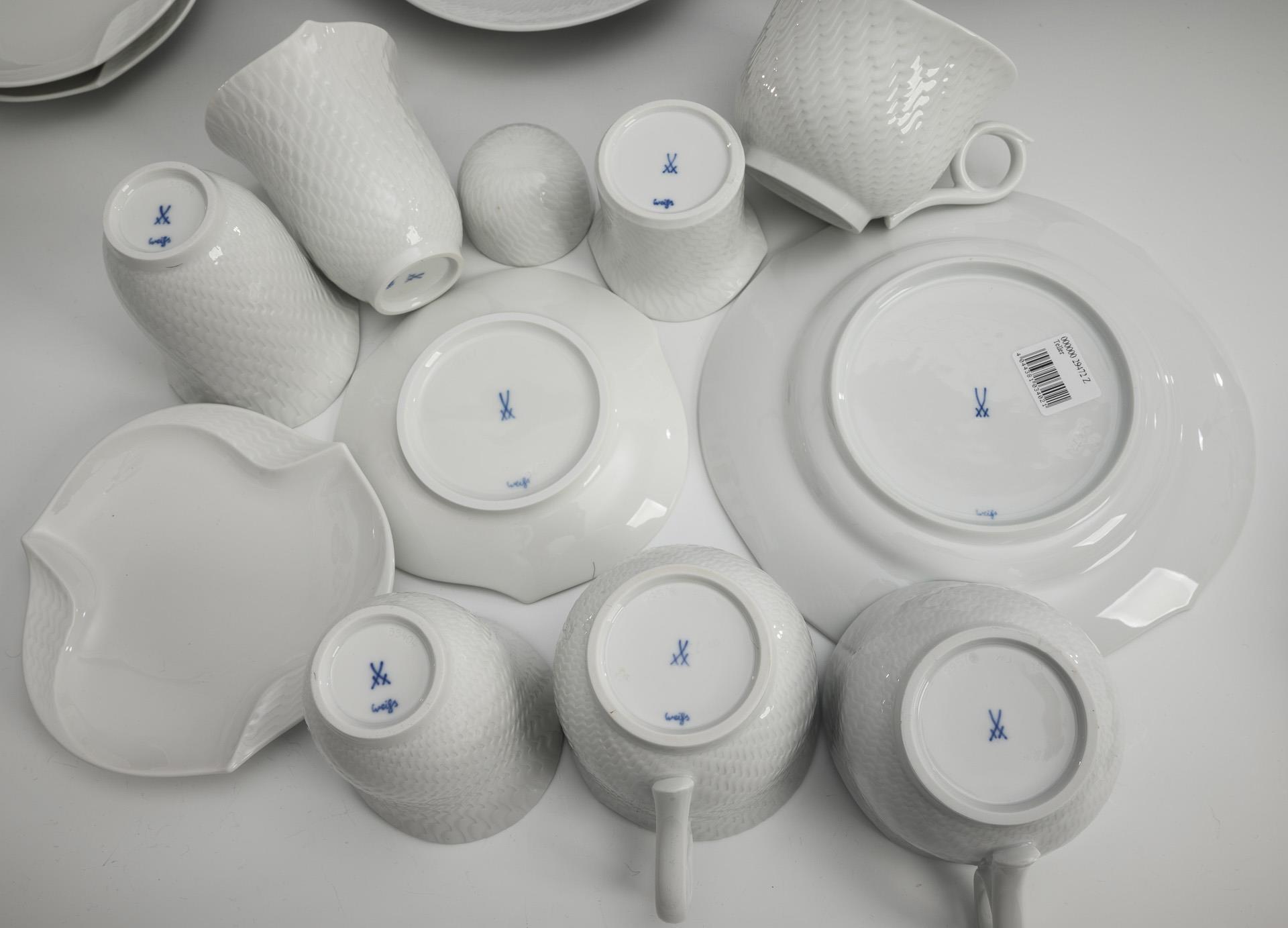 4 large cups (H 8.5 cm) with 5 saucers (Ø 15.5 cm), 3 bread plates (Ø 22.5 cm), 7 mugs (H 10.5 cm), and 1 sugar bowl (H 9.5 cm).
