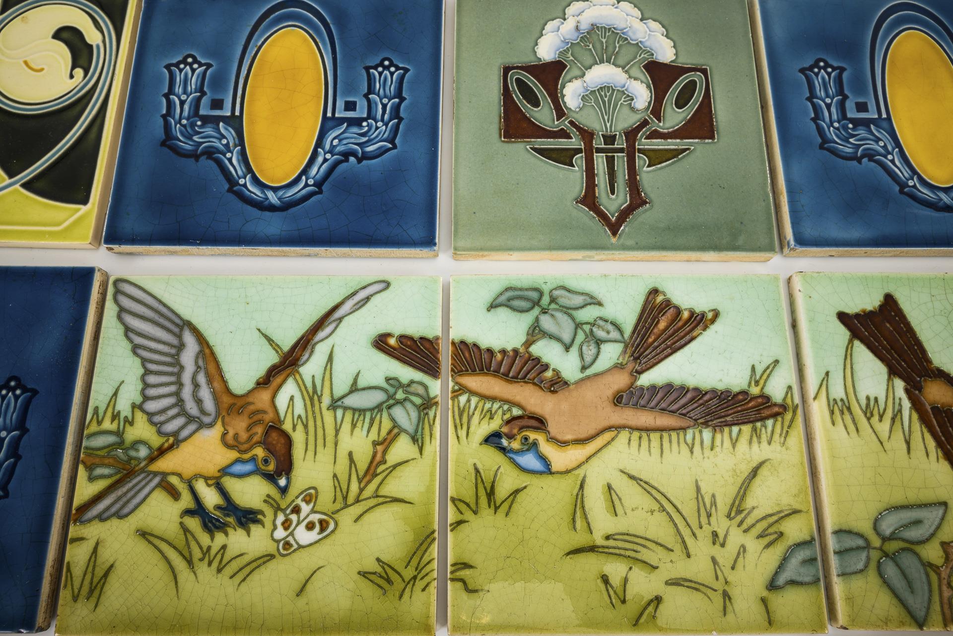 Collection of Art Nouveau tiles and 1 framed tile picture.