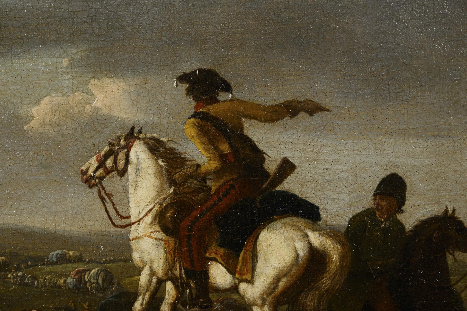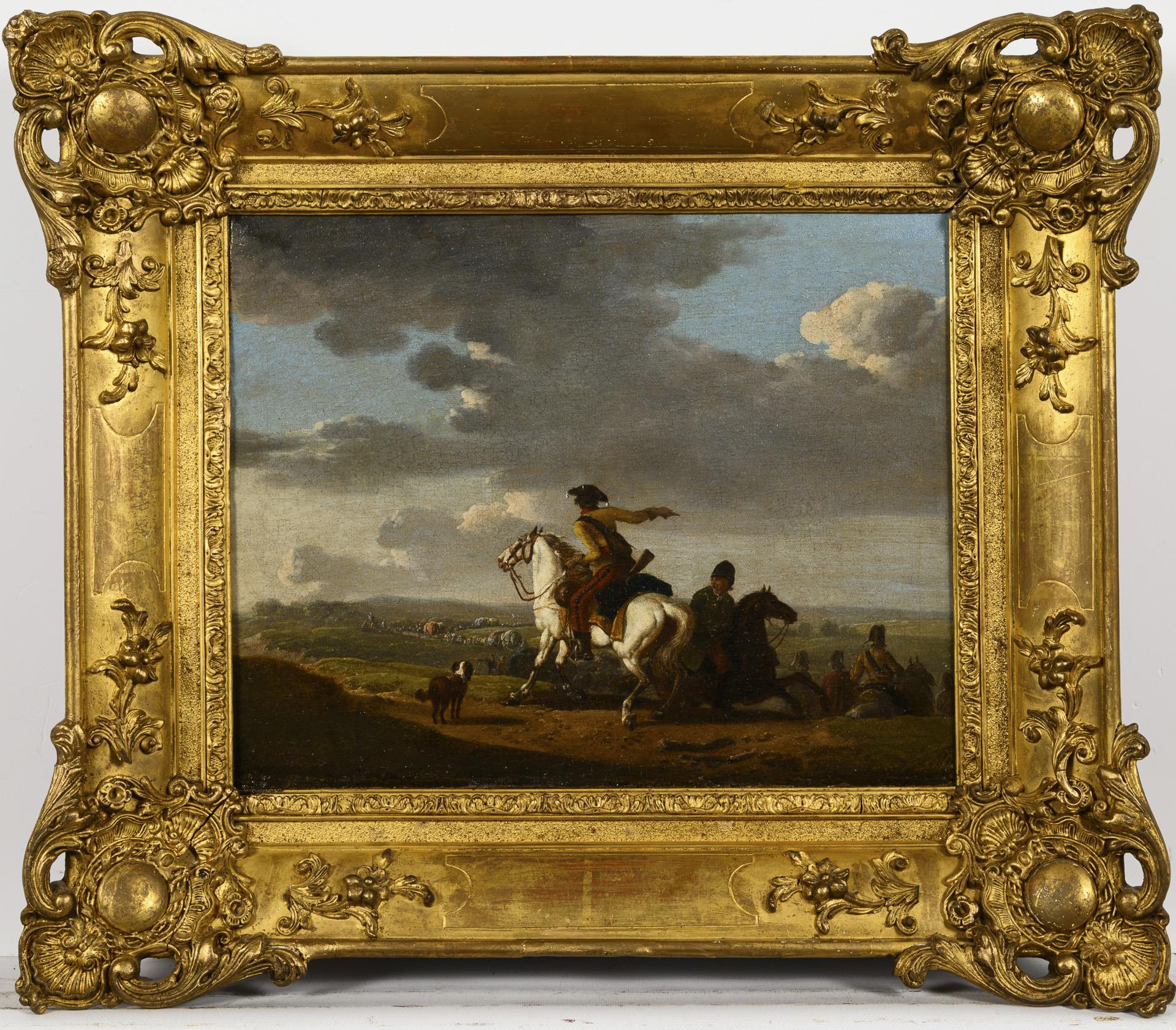 Horseman with caravan in hilly terrain in the sunshine. Doubled canvas.