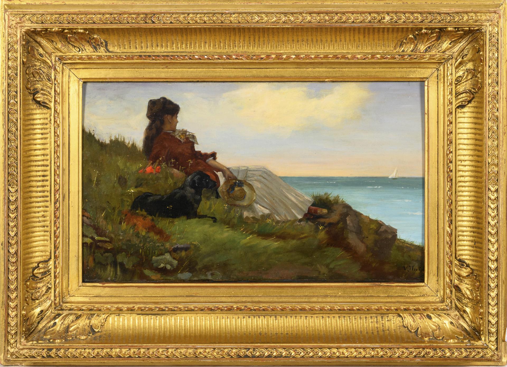 France 19th century: Woman on the beach