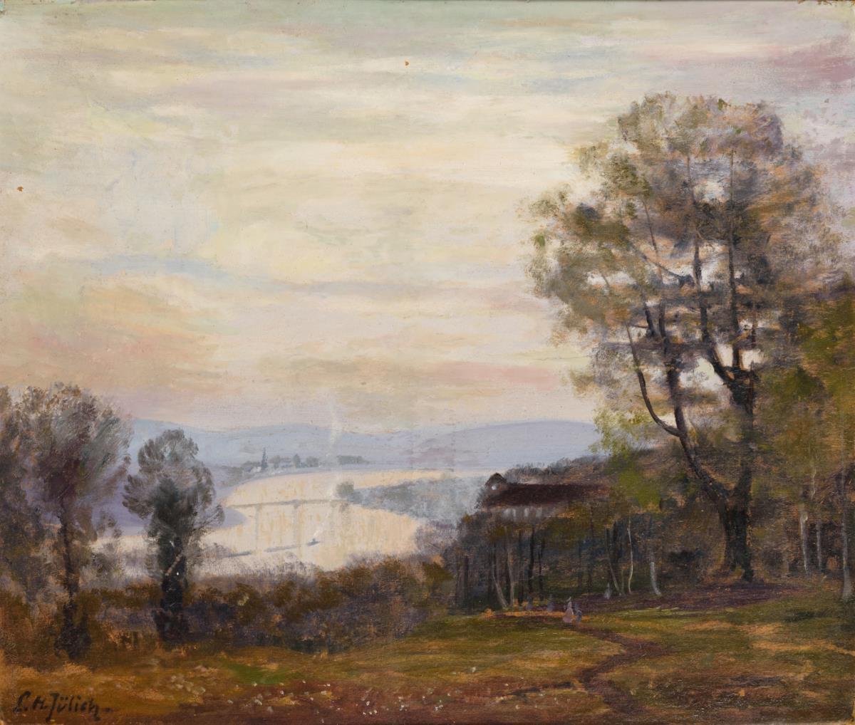 Jülich, Leopold Heinrich: Spätsommerliche Landschaft. Öl/Karton, links unten