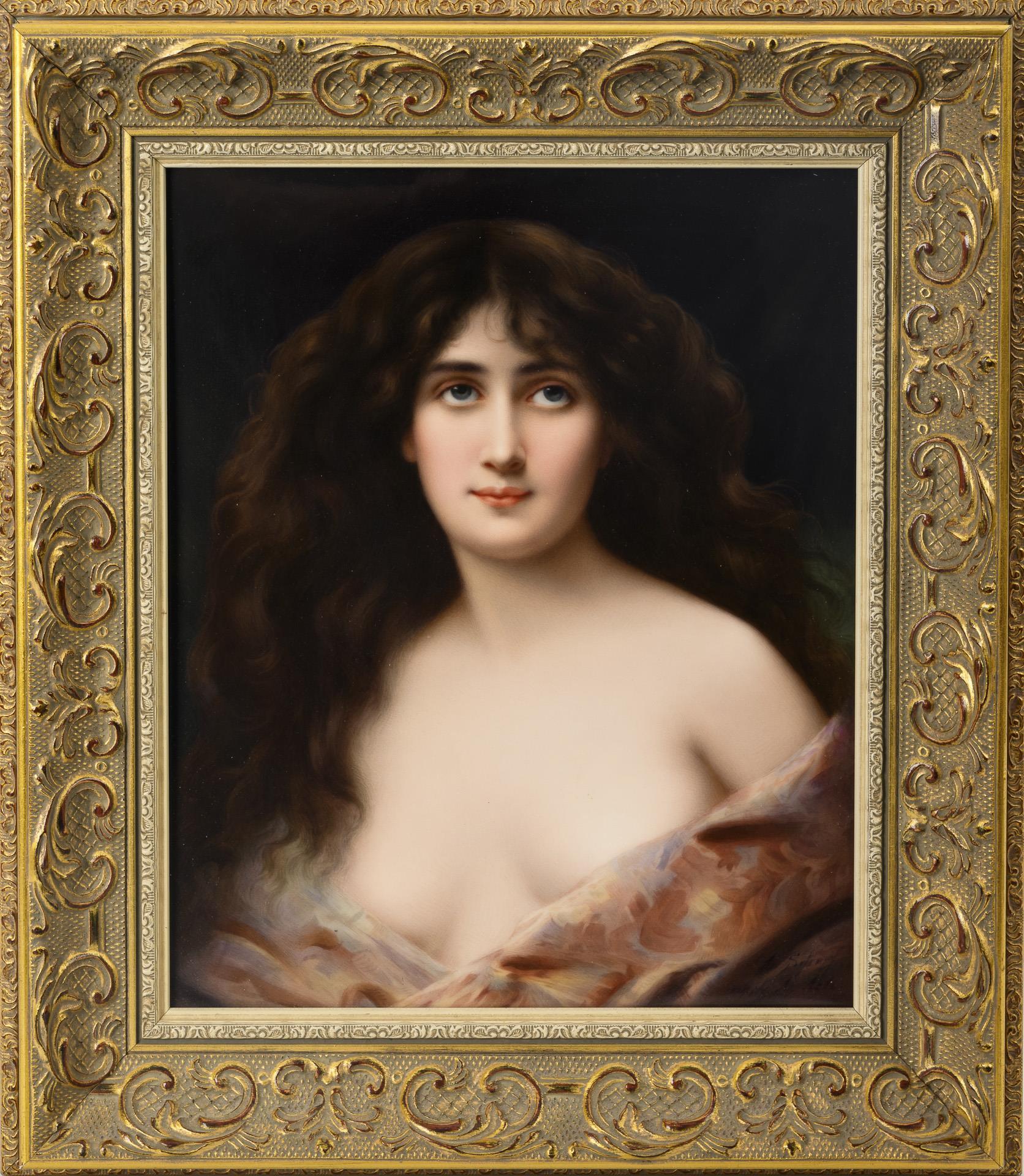 Porcelain painting: Portrait of a lady. KPM Berlin.