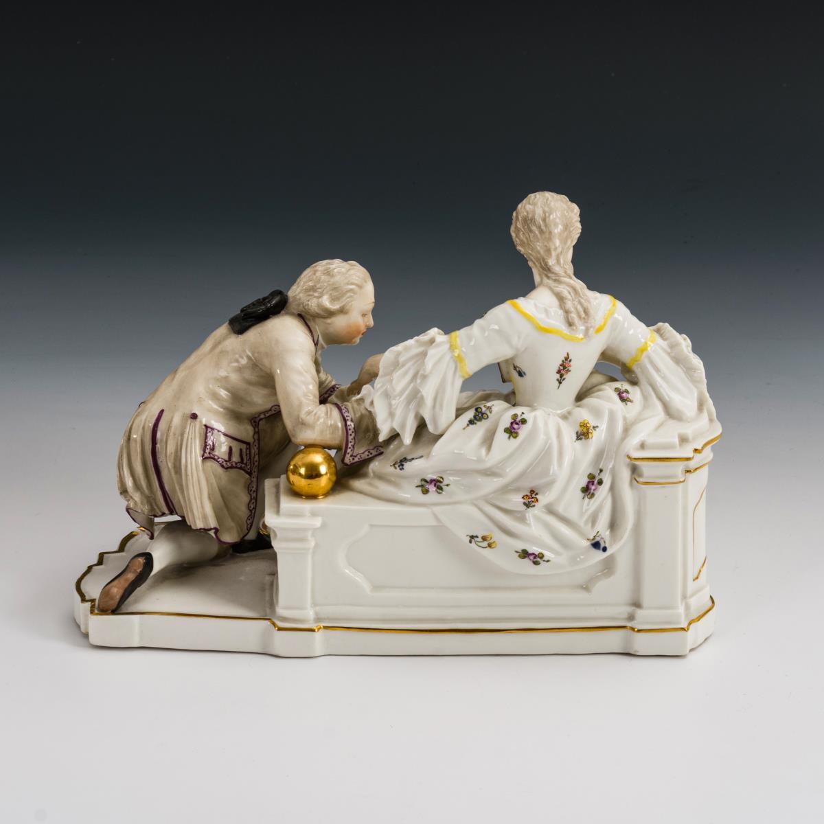 der Dame küssenden Kavaliers. Farb- und goldstaffiert. H 16 cm.