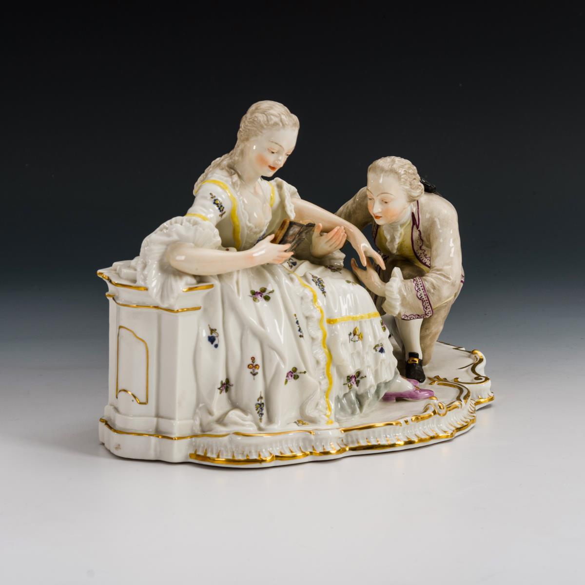 Der Handkuss, Nymphenburg. Geprägte Wappenmarke, um 1900. Auf einer