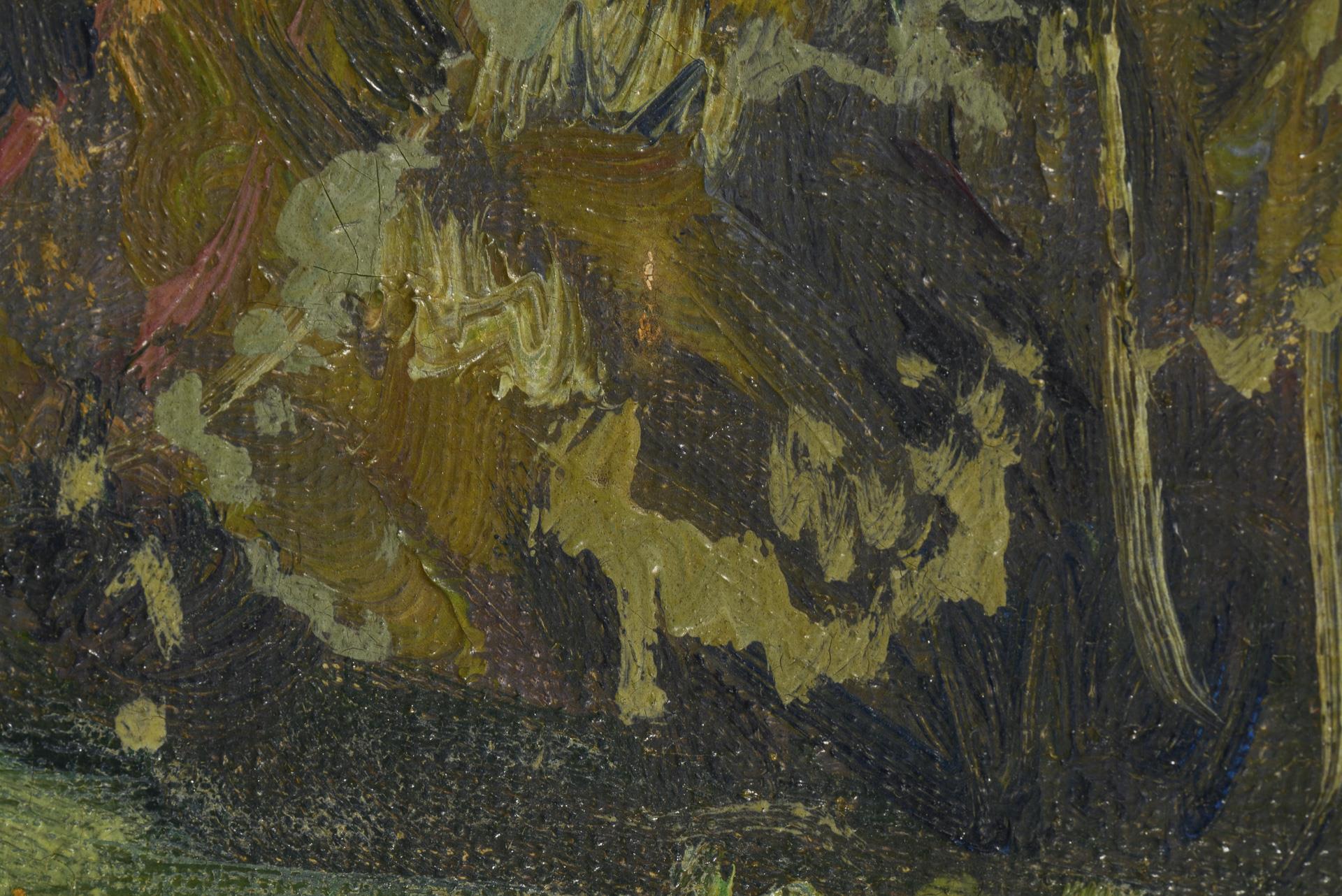 Oil/canvas. Indistinctly signed lower right, verso owner's stamp of "Drogerie Herm. Happ Solingen". 1930.