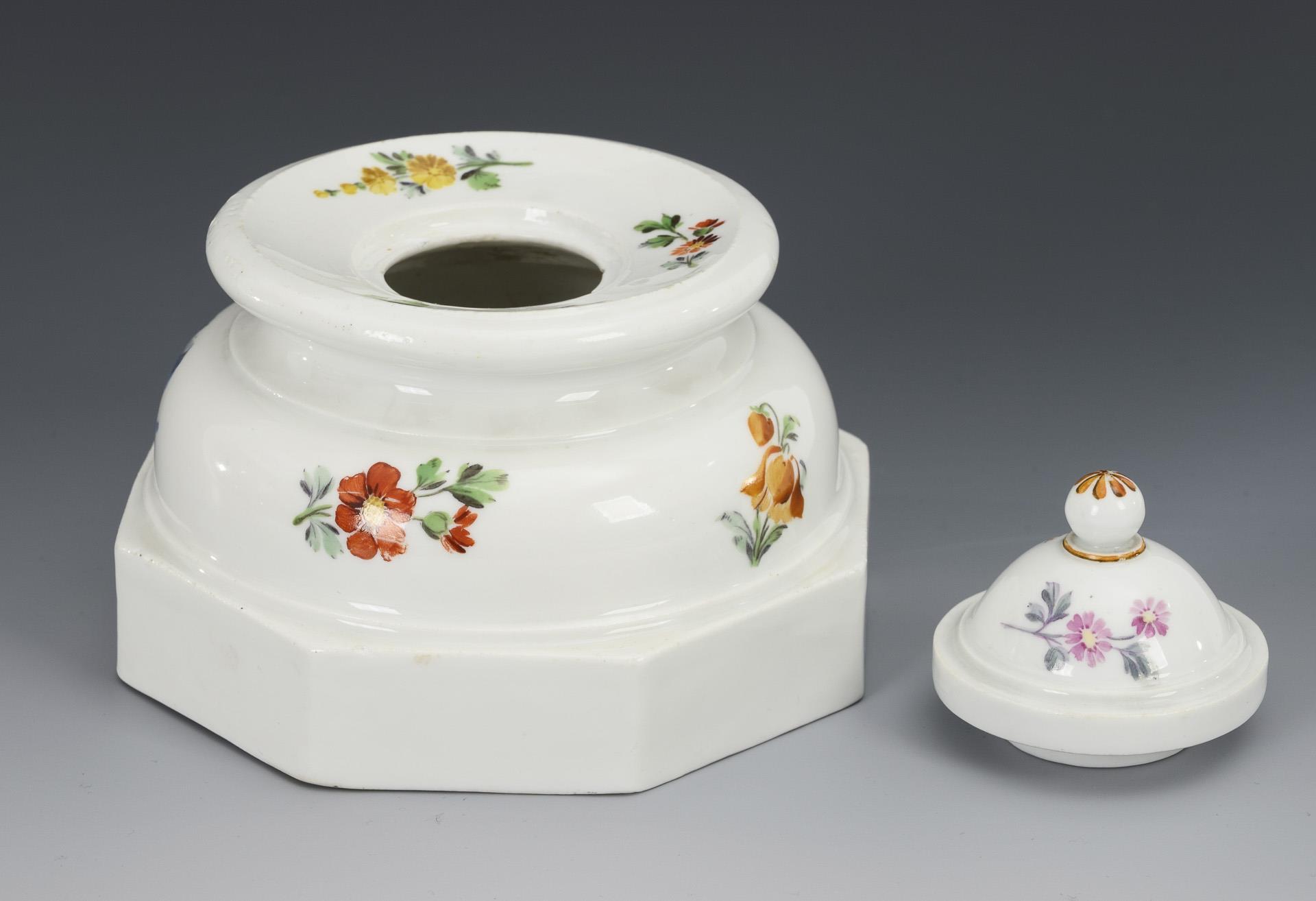 Baroque inkwell with floral painting. Meissen.