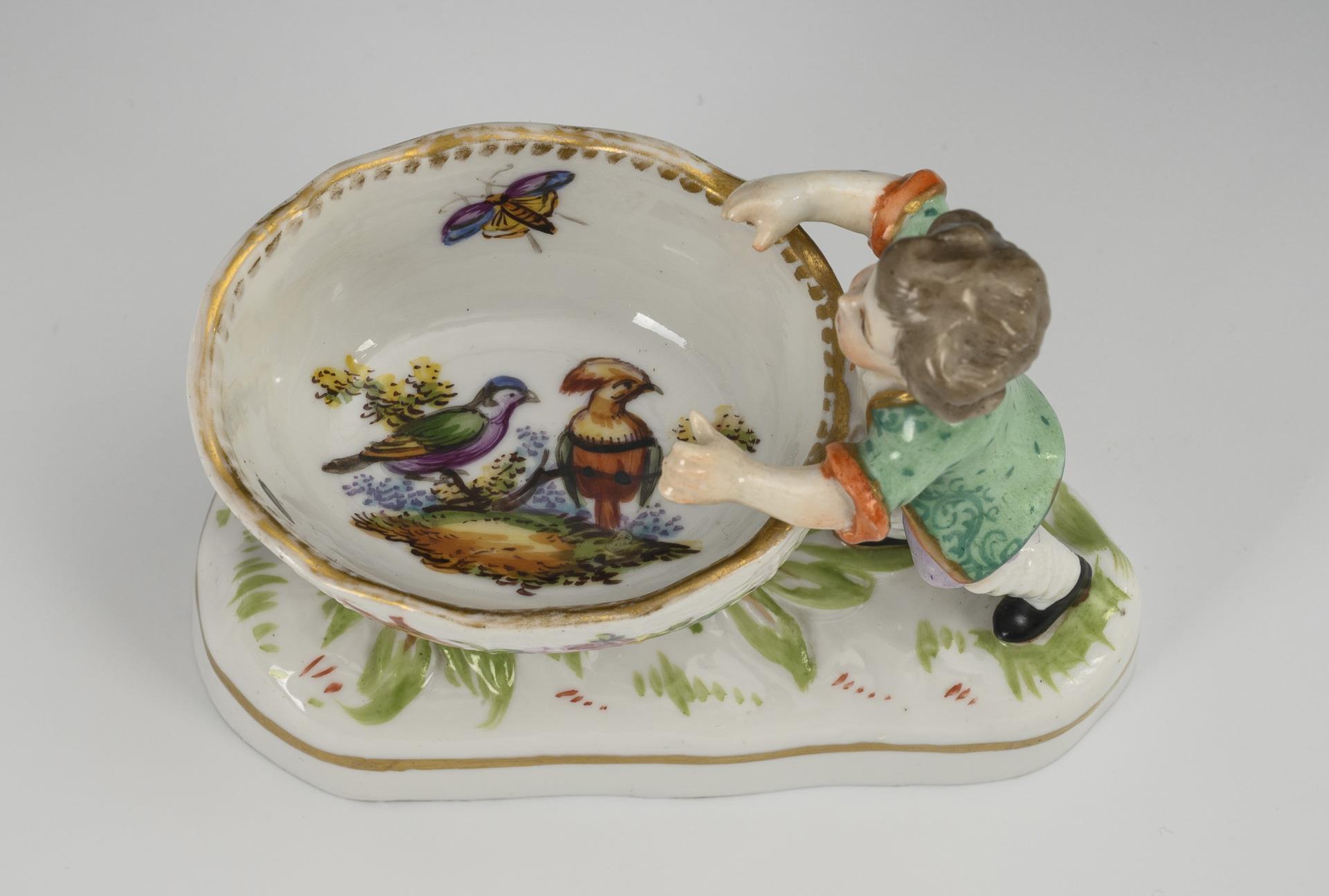 Polychrome painted, decorated with gold. H 9.5 cm.