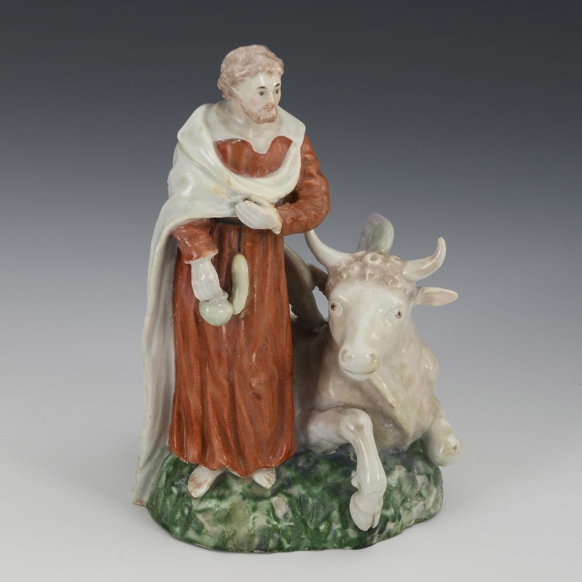Figure of the Evangelist standing next to his attribute, the bull. Chips to the edge of the base, restored.
