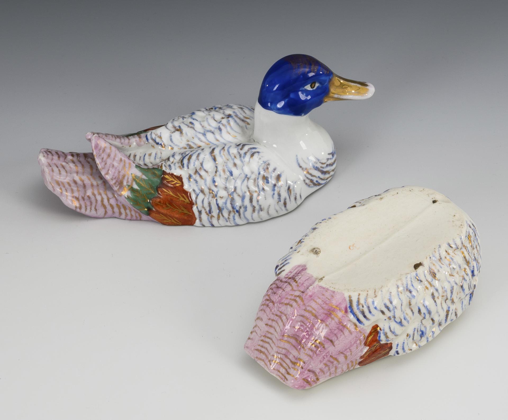 Polychrome painted, decorated with gold. H 10 cm, L 18 cm.