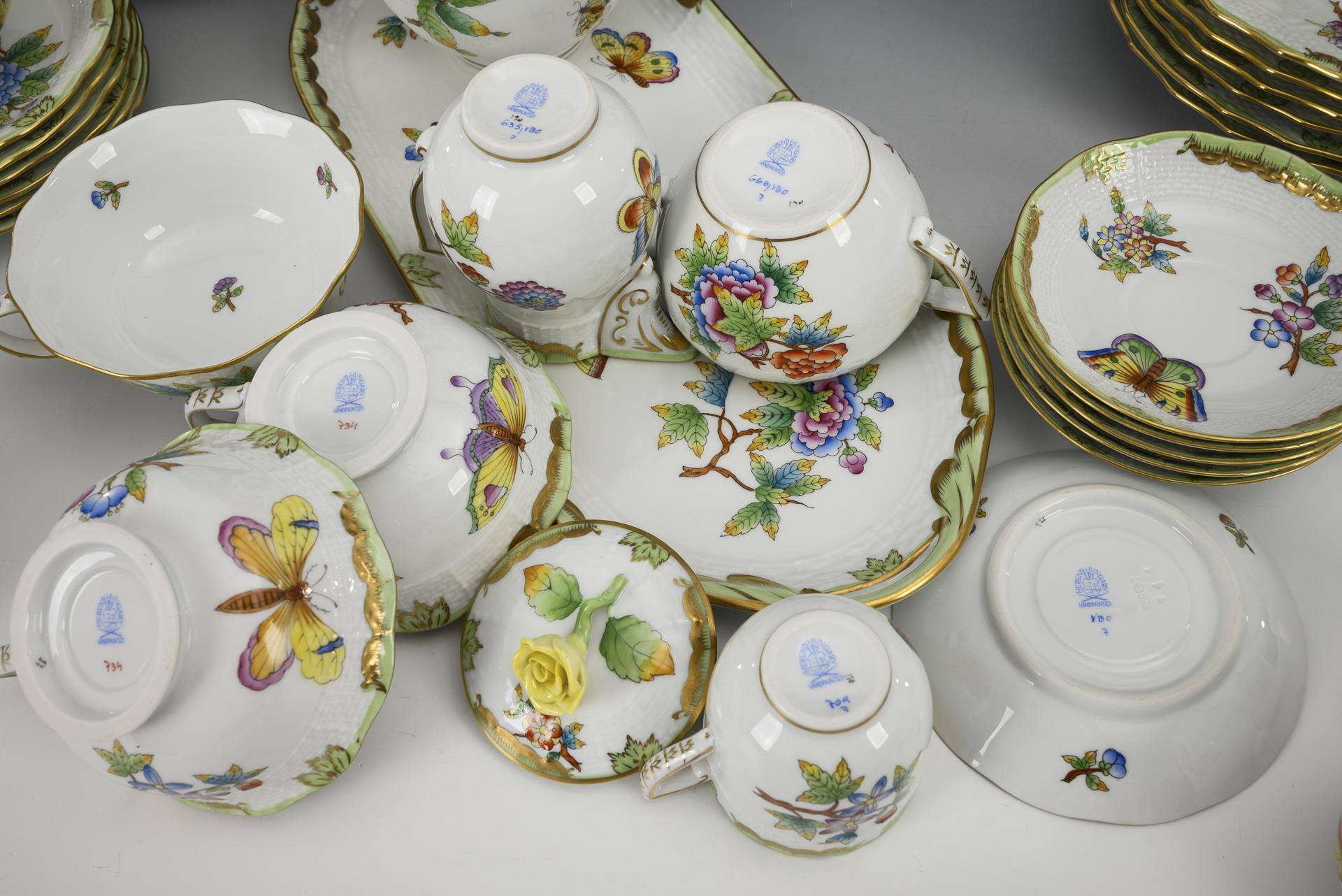 43 pieces. "Altozier" form. Coffee pot (H 24 cm), mocha pot (H 20 cm), 2 milk jugs (H 7.5 and 10 cm), 2 sugar bowls (H 10 and 10.5 cm), 6 teacups with 6 saucers, 6 mocha cups with 6 saucers, 6 breakfast plates, 6 bread plates, 1 oblong cake plate (L 36 x W 15.5 cm). Rosy knob of the demitasse cup with minimal chips, 1 saucer with minimal loss to the painting.