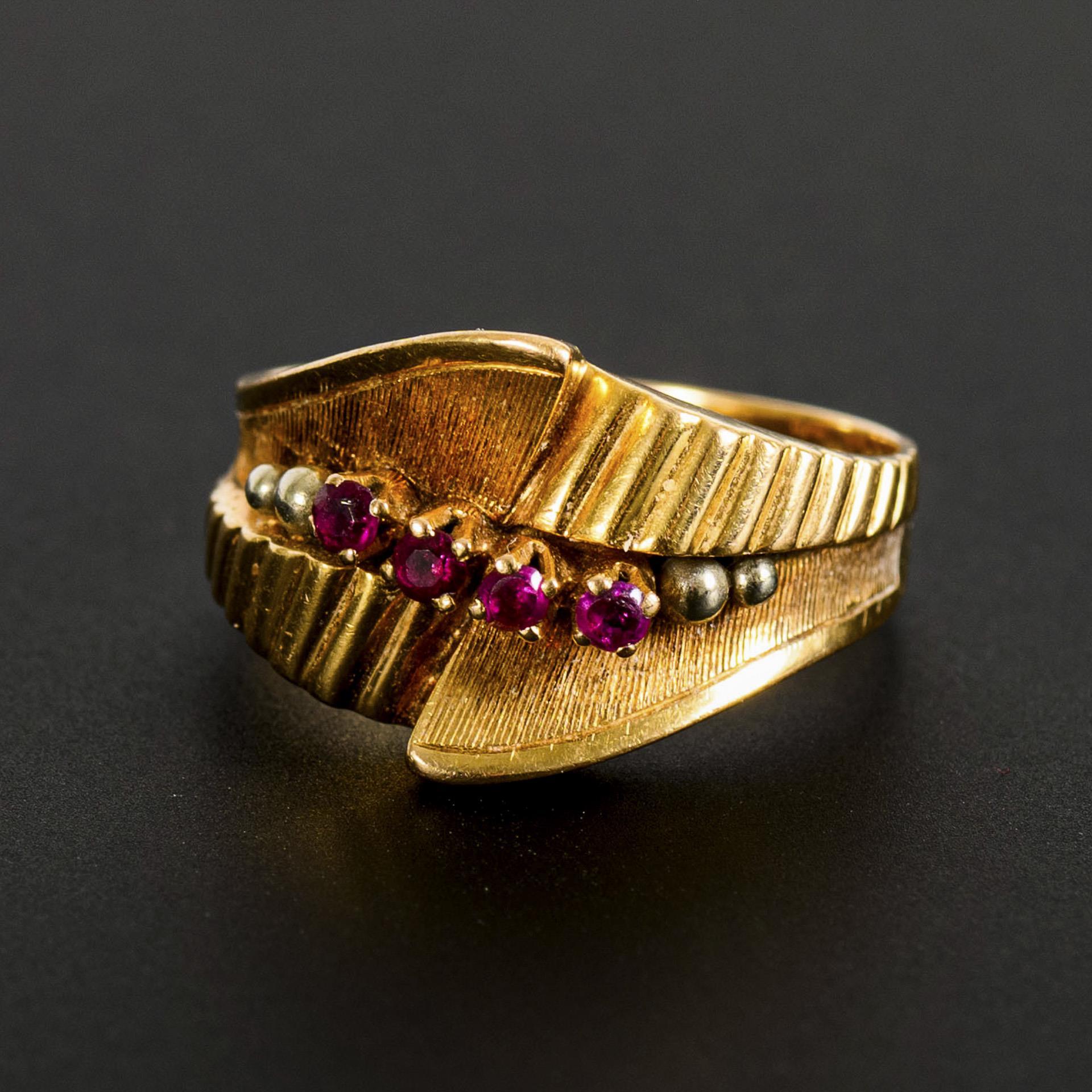 Stamped 750 yellow gold. Ring size 59. 5.8 g.