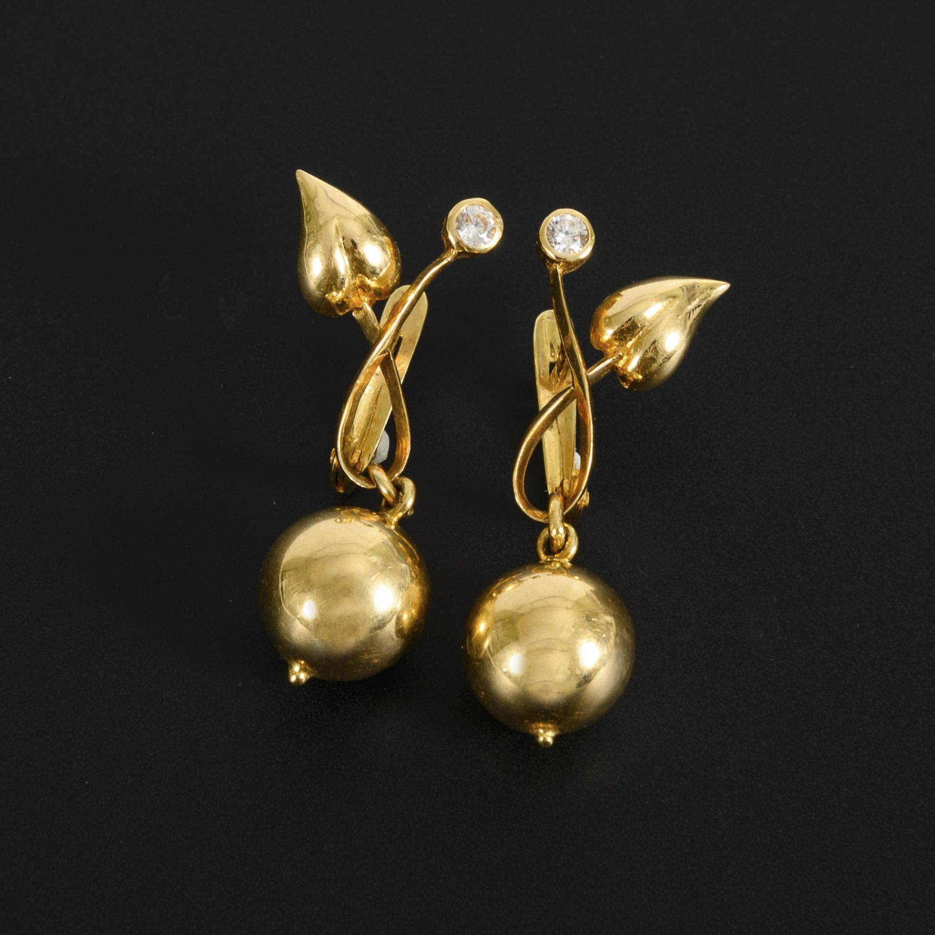 Unmarked, yellow gold 750 tested. Length: 3.4 cm. 6,0 g.